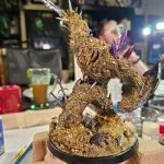 3D-printed and very upscaled (SLA) resin sculpture from Gambody.com. A lot of clear-coat and special colour-shift paint to finish. Printed as solid pieces w/ hollow torso using the Anycubic Photon M3 Max and Anycubic Water Wash Grey Resin (about 4 bottles worth over a week of printing). A ton of fun and definitely one of my prize figures.