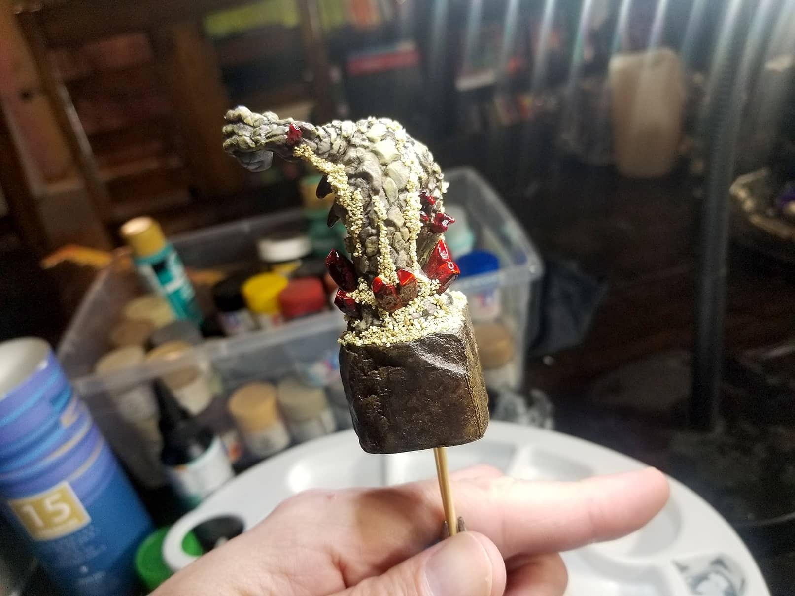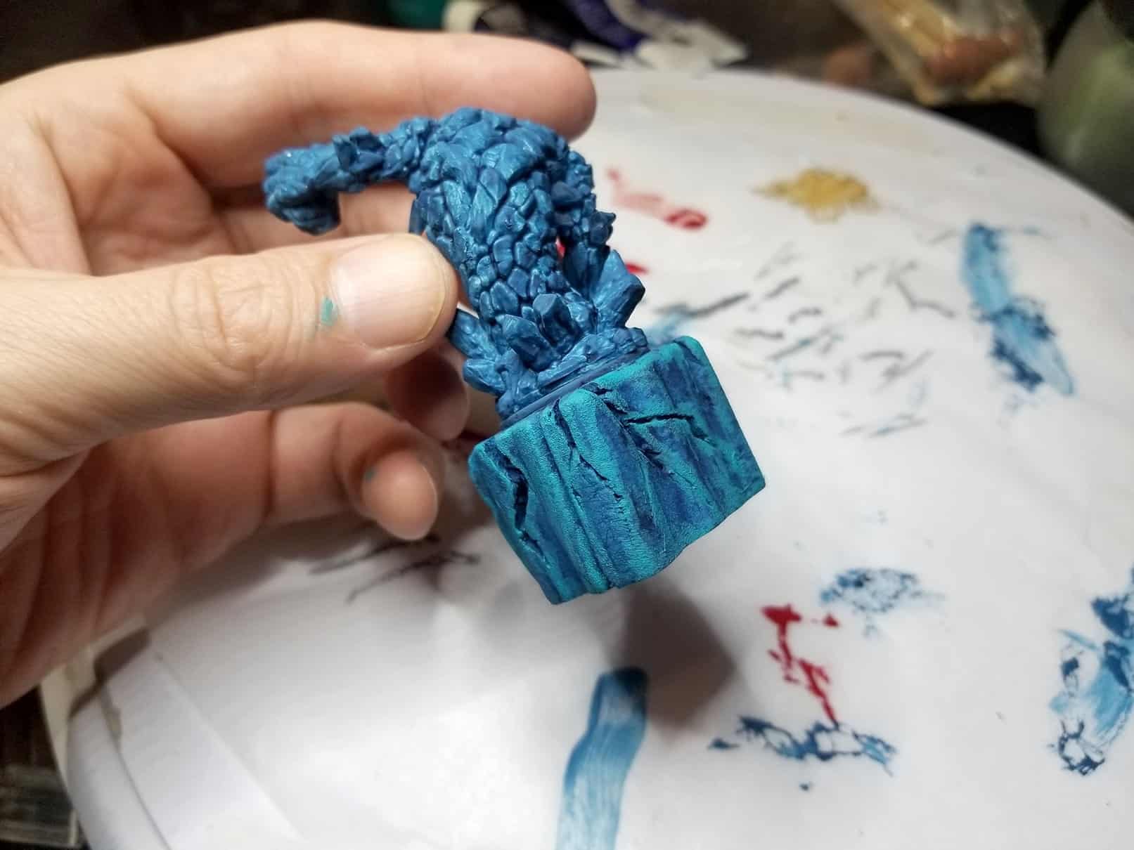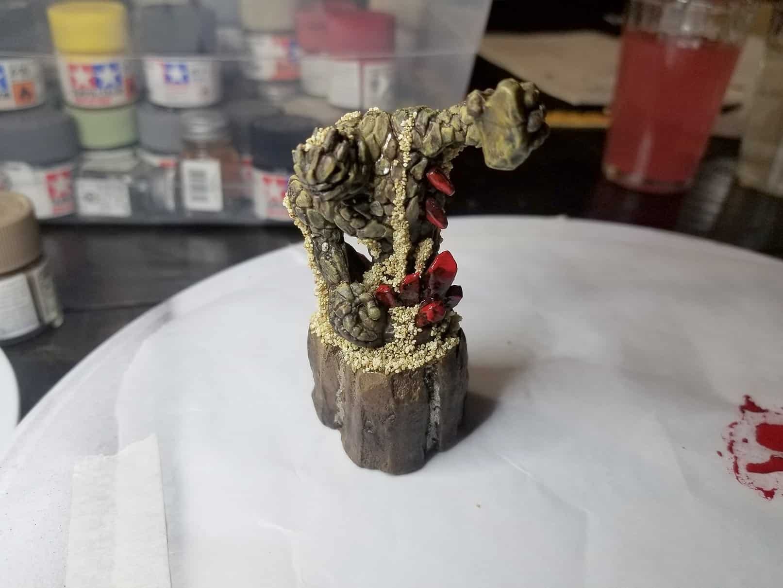 This was an absolutely zen project to work on. There is such a myriad number of coins and objects that my imagination went on full overload staring at the completed 3D print. I printed it at the Loot Studios standard size instead of upscaling it like I usually do with STL’s this awesome, and the resulting size did not disappoint. I used Green Stuff to seal up the gaps and the end of a thin wood dowel pressed into the putty to simulate the coin texture – super hard to tell in the end result after painting.