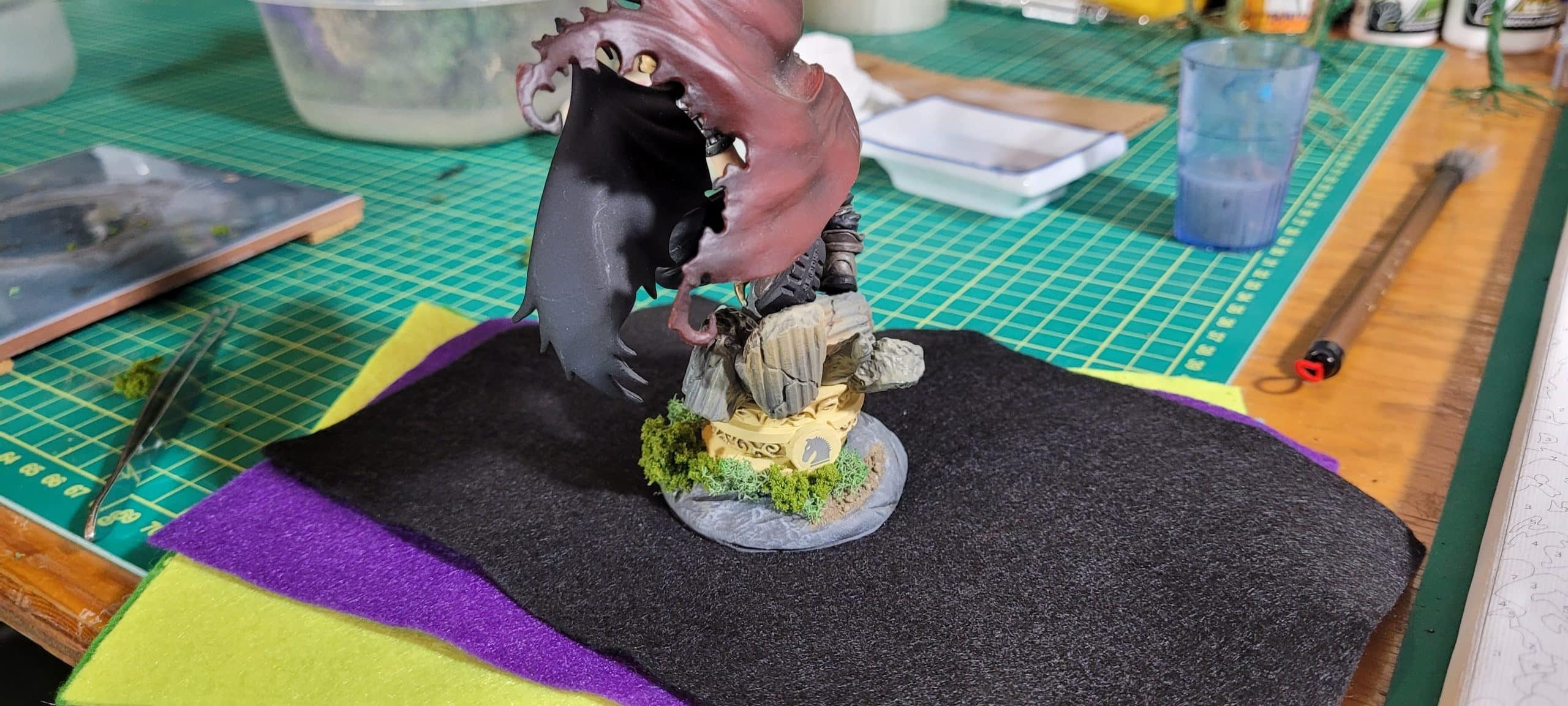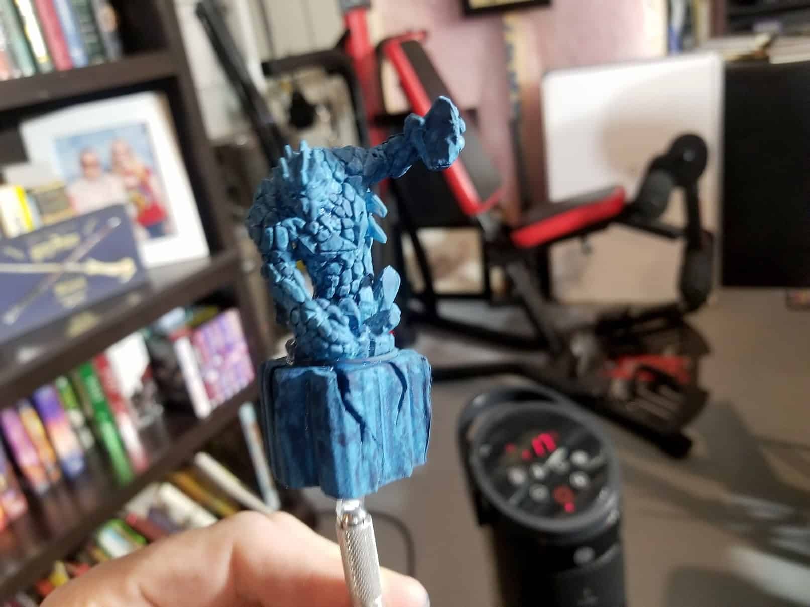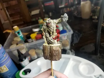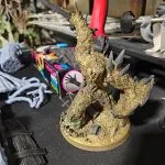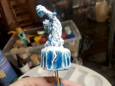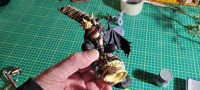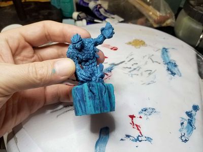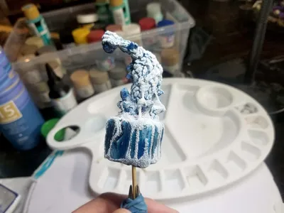 3D-printed and very upscaled (SLA) resin sculpture from Gambody.com. A lot of clear-coat and special colour-shift paint to finish. Printed as solid pieces w/ hollow torso using the Anycubic Photon M3 Max and Anycubic Water Wash Grey Resin (about 4 bottles worth over a week of printing). A ton of fun and definitely one of my prize figures.