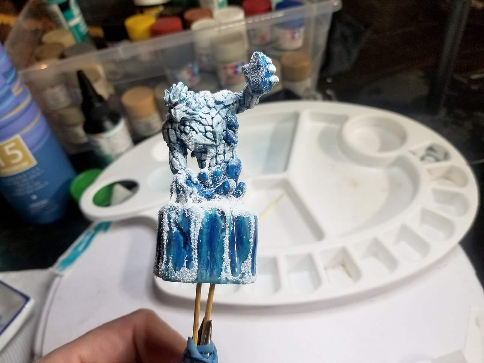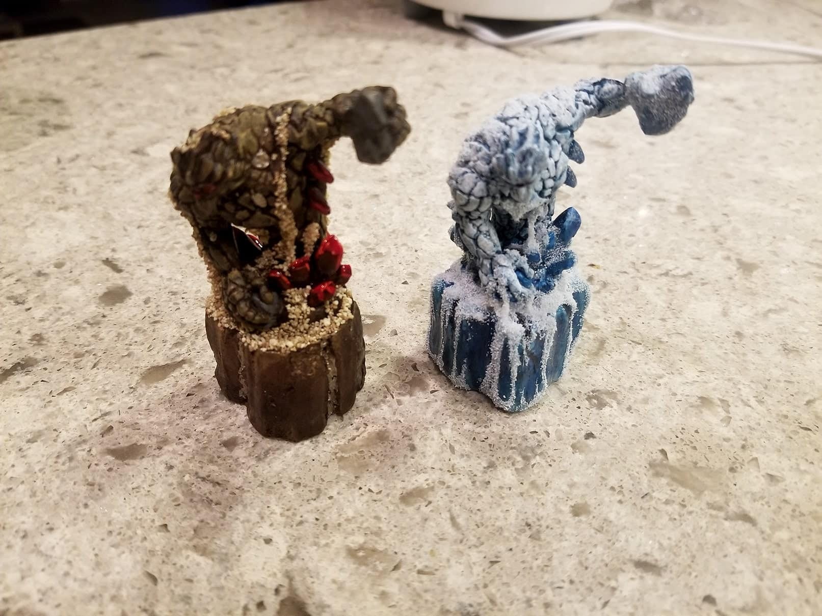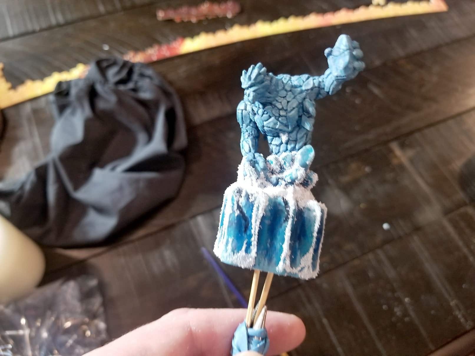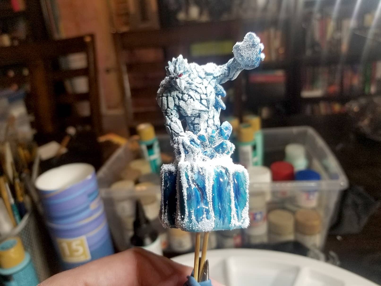 I have only recently started painting miniatures. The Earth Elemental and Ice Elemental you see here are the first two minis of what I hope will be a long line of future mini-painting projects. I have about 3-dozen or so unpainted miniatures kicking around, I just need more hobby time to paint ’em.