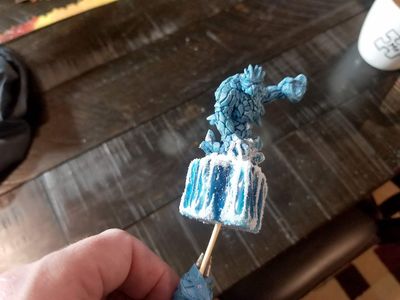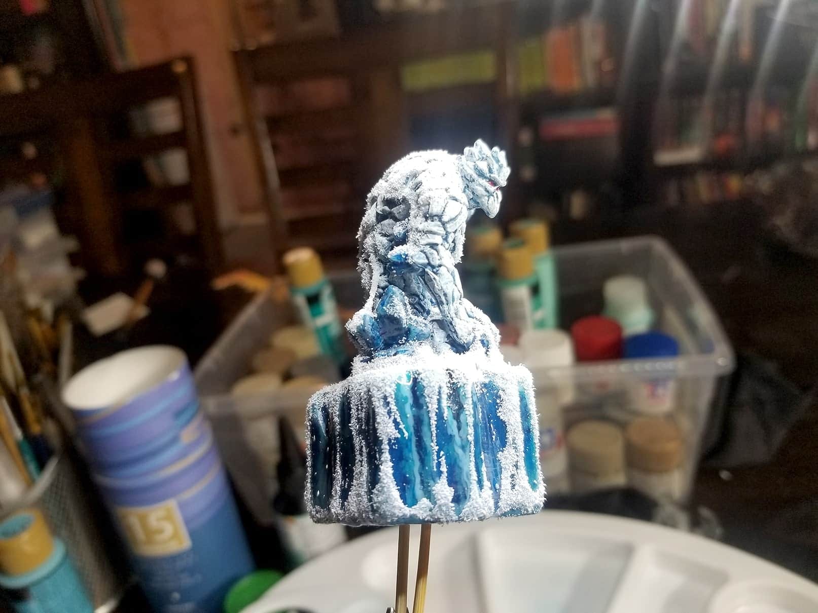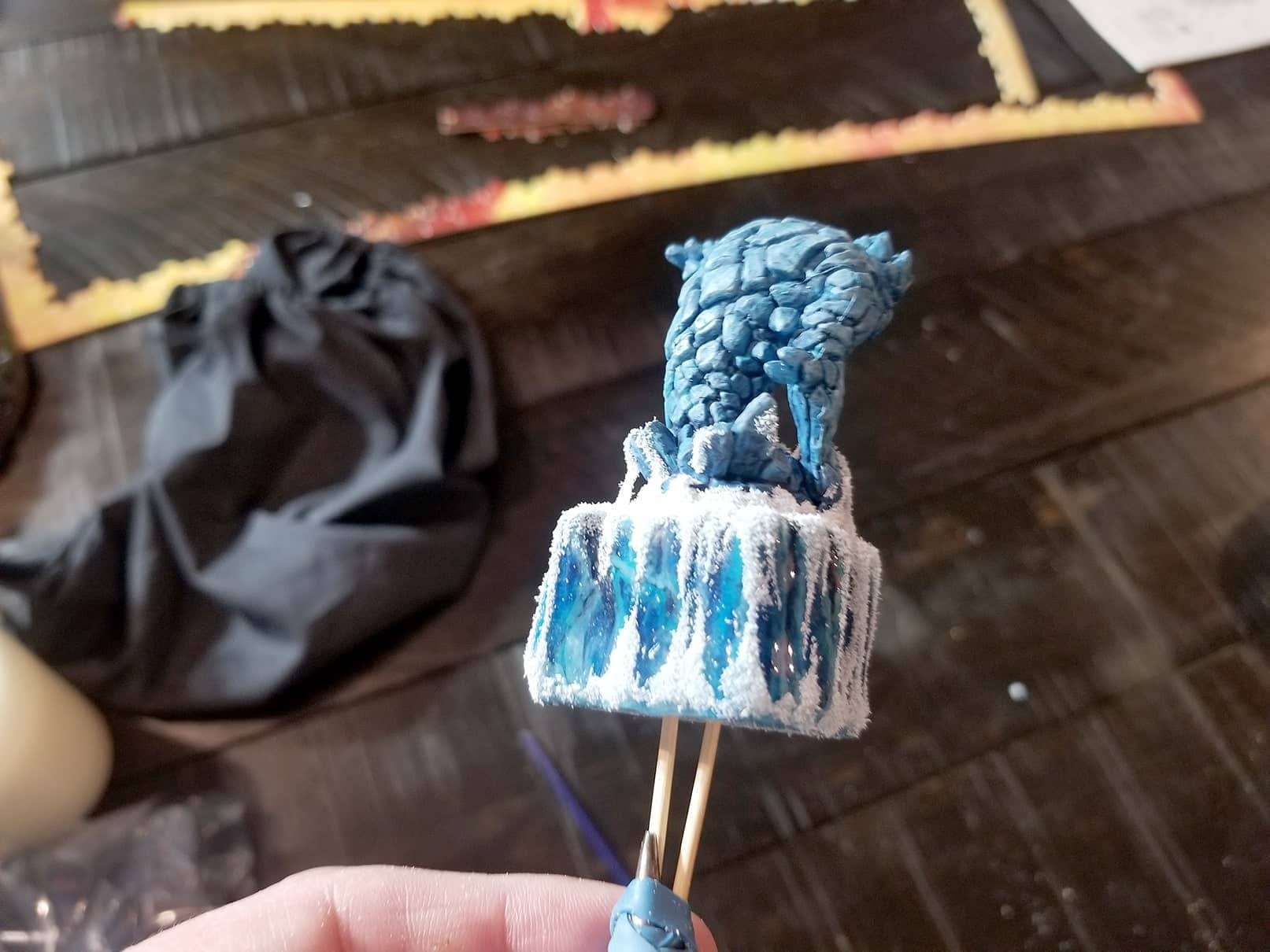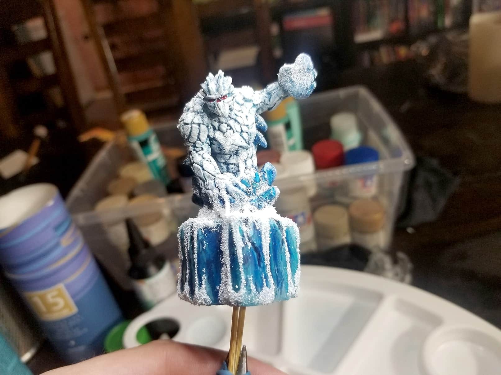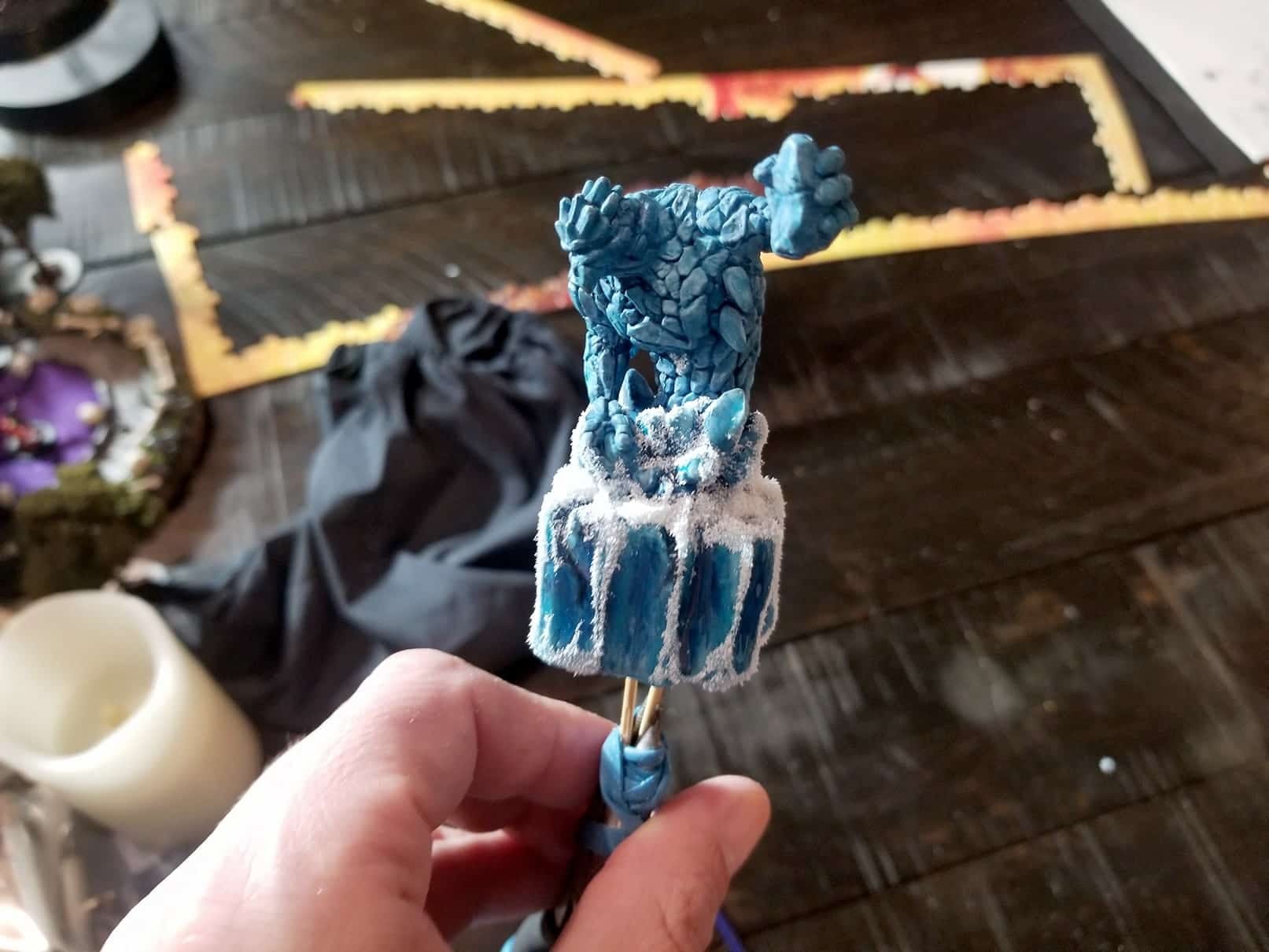I have only recently started painting miniatures. The Earth Elemental and Ice Elemental you see here are the first two minis of what I hope will be a long line of future mini-painting projects. I have about 3-dozen or so unpainted miniatures kicking around, I just need more hobby time to paint ’em.