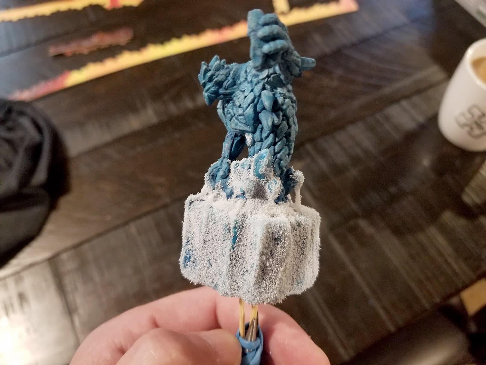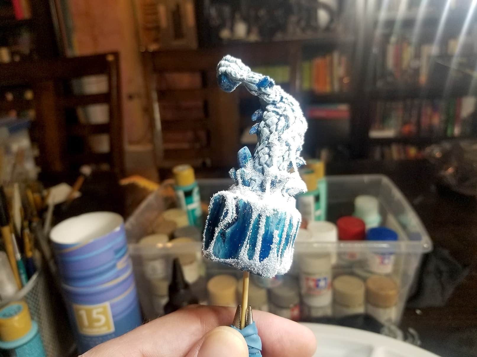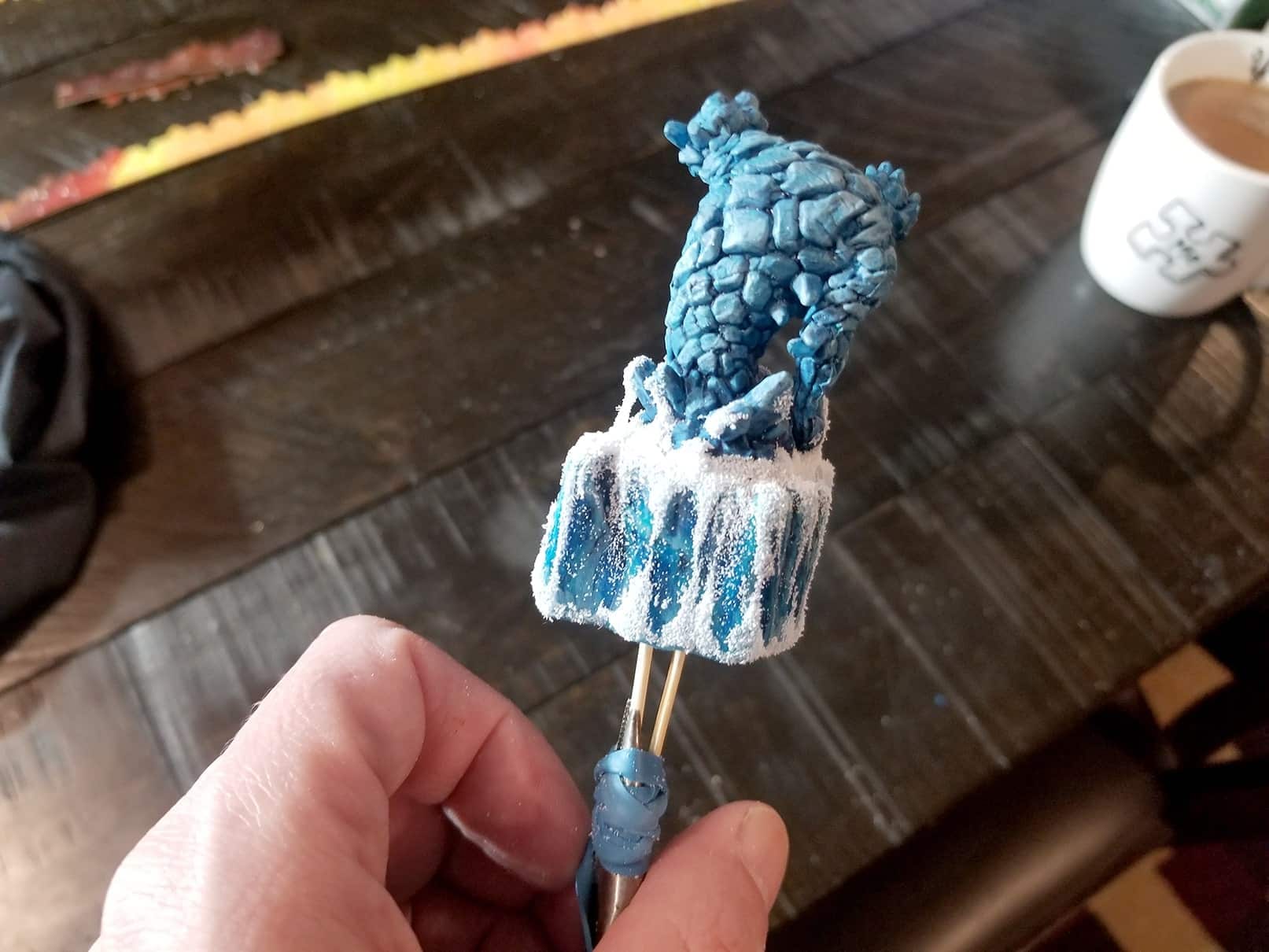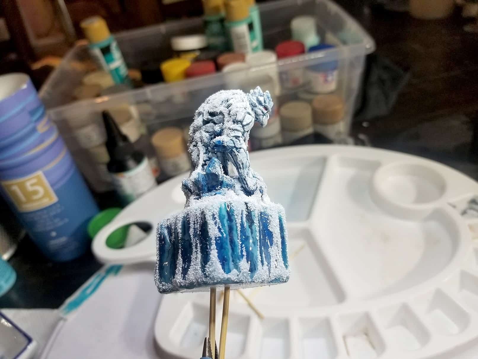I have only recently started painting miniatures. The Earth Elemental and Ice Elemental you see here are the first two minis of what I hope will be a long line of future mini-painting projects. I have about 3-dozen or so unpainted miniatures kicking around, I just need more hobby time to paint ’em.