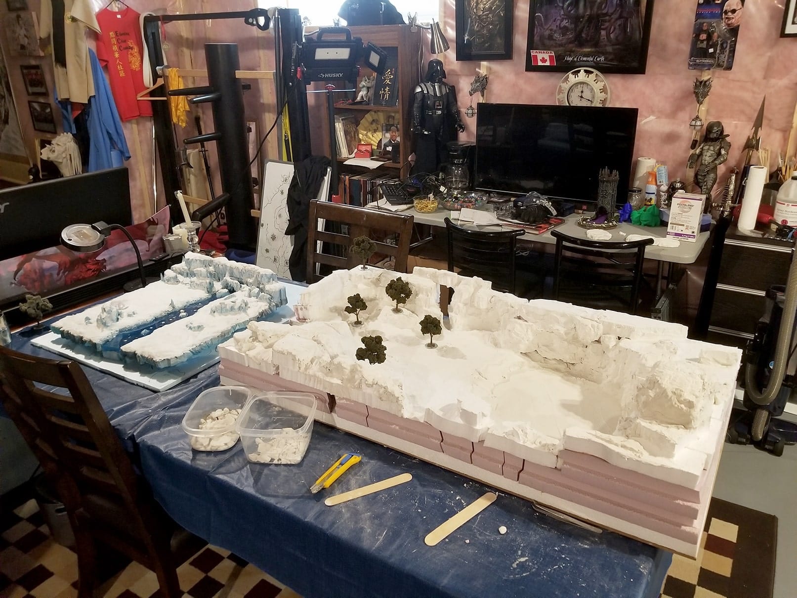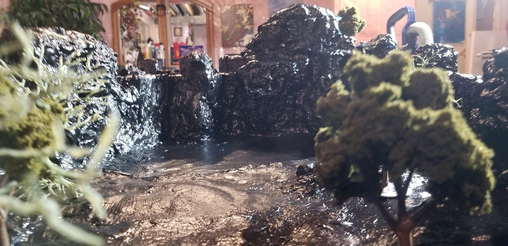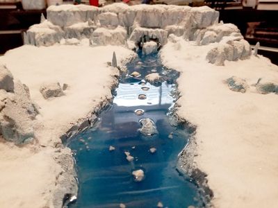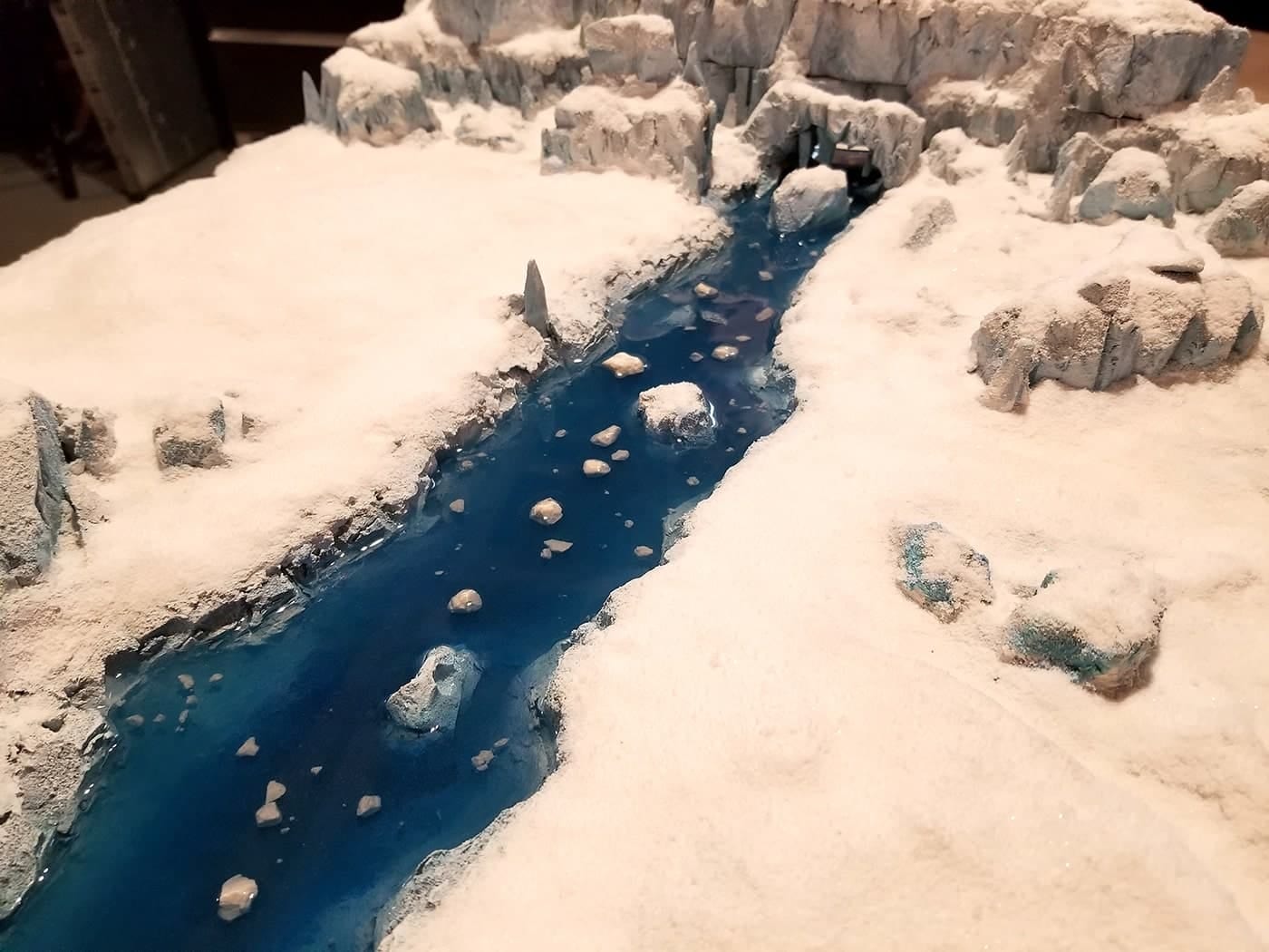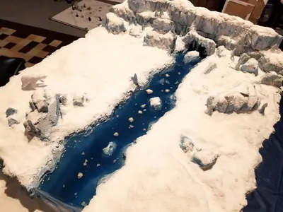Just over a year ago (2021) Brit Young and I started building a piece of winter terrain. We were aiming for something with a touch of ‘glacial melt’ feel to it and this is how it turned out.