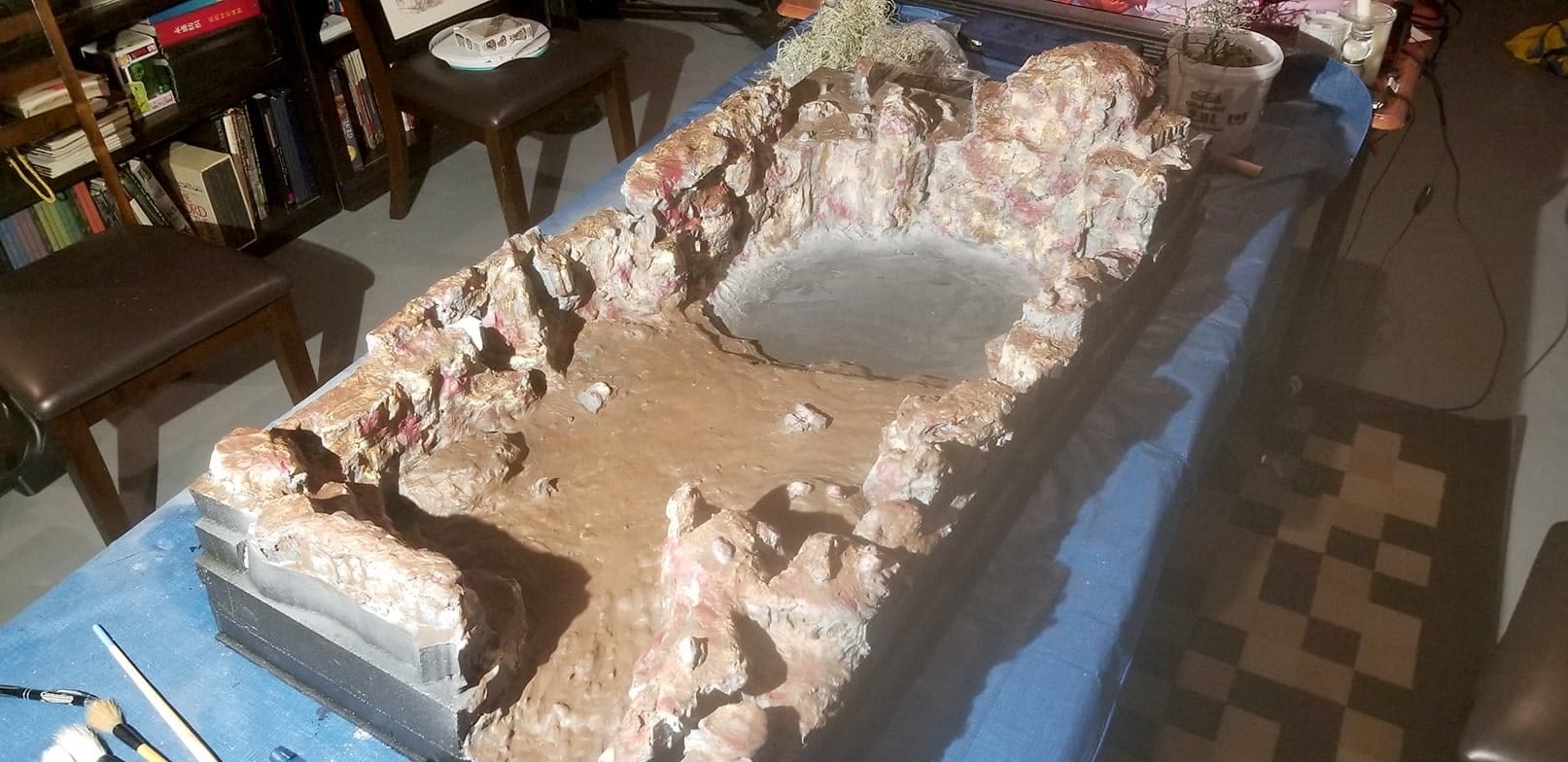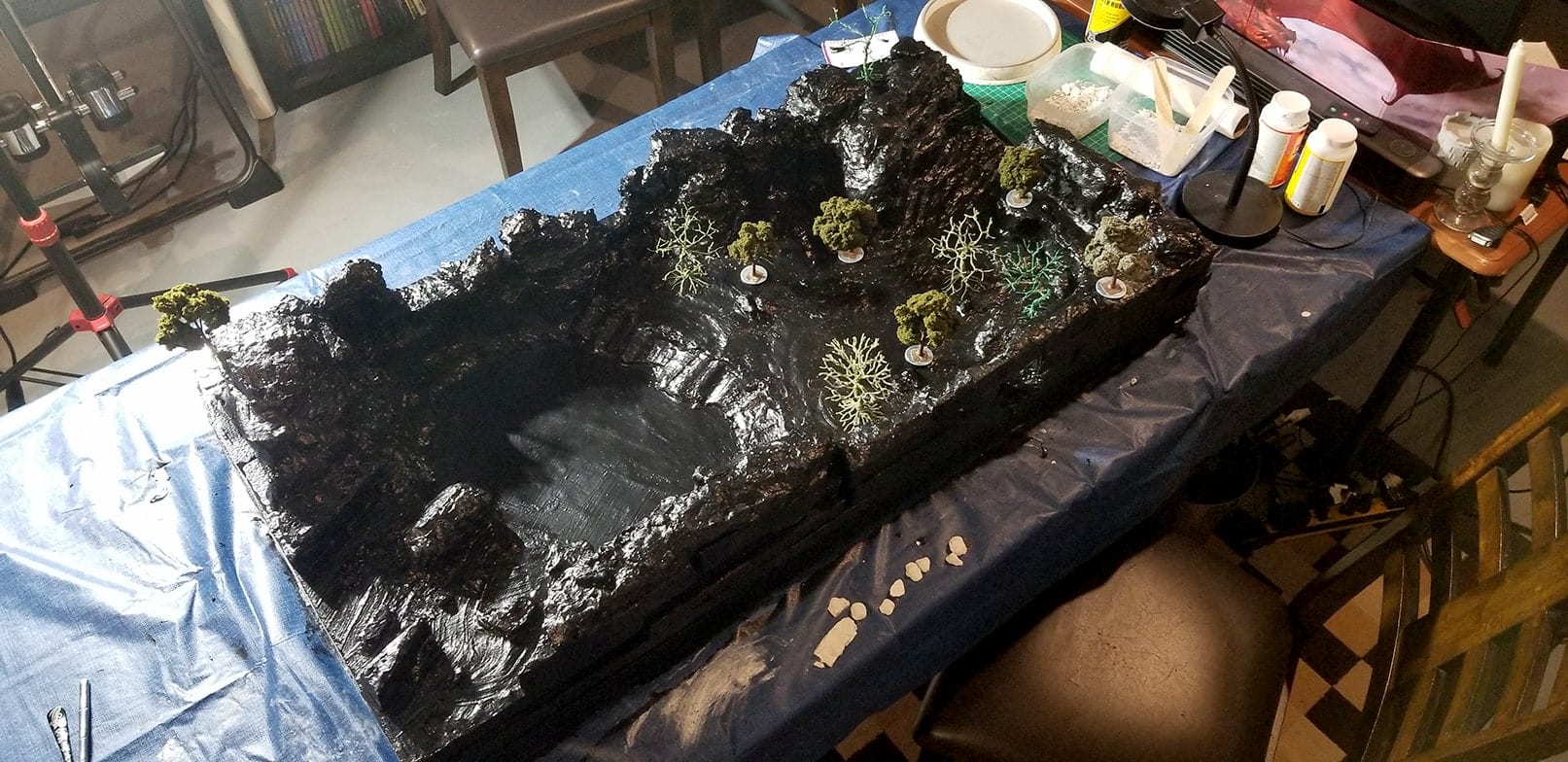 Last year my best friend Brit Young and I started building a large-scale piece of organic terrain and here is the results of the effort thus far. We are aiming for ‘Sacred Unicorn Glen / Fairy Forest’ meets ‘Mermaid Sanctuary / Sunken Temple’. I know; we’re ridiculous. But, if we’re putting in the time and effort to get some experience in miniature terrain building we might as well put our every desire into it. 😀
