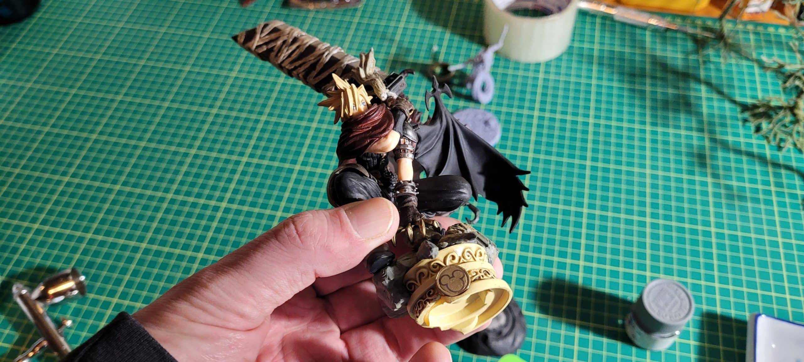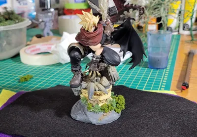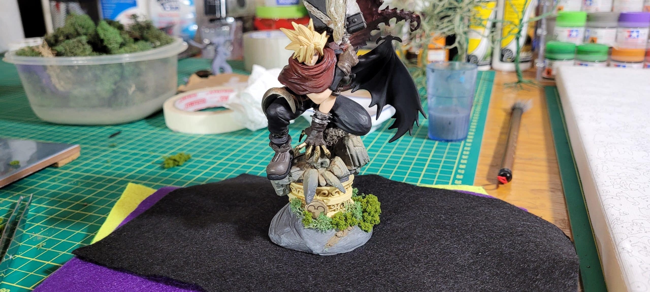 My girlfriend had broken one of her favourite Final Fantasy figures during a recent house move, so I thought I’d try to fix it up for her. Using Sculpey® clay and a little dose of imagination, I put some nature into the pedestal and gave this figure a new lease on bookshelf life with a rocky base and some foliage.