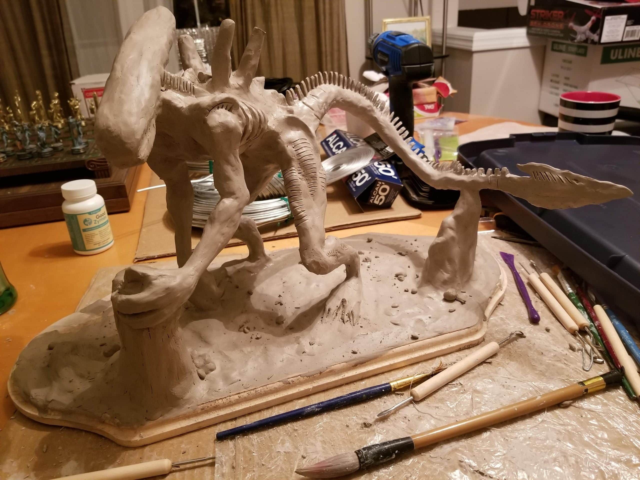 H.R. Giger’s ‘Xenomorph’ is probably one of my favourite subjects to sculpt….or draw, watch, talk about (you get the idea). I started this sculpture ‘completely wrong’ (with an image in my head, instead of on paper, lol – a process that works very well for me when it comes to subjects I am intimately familiar with.