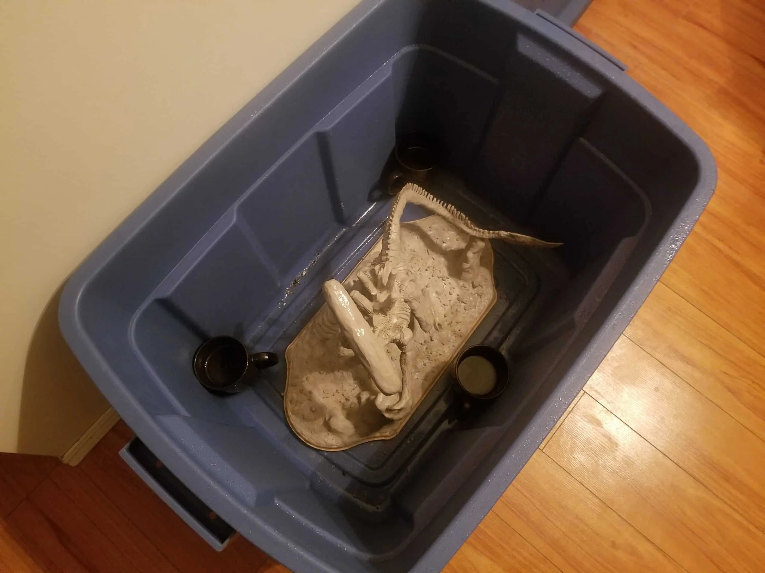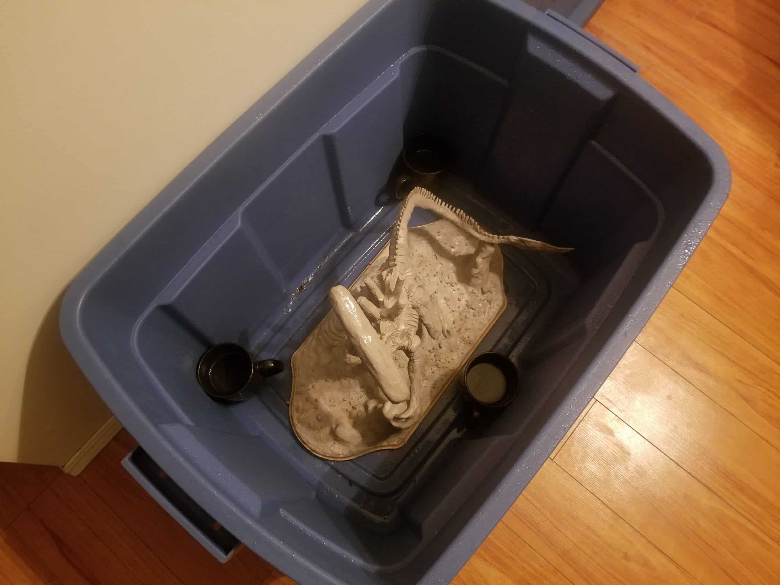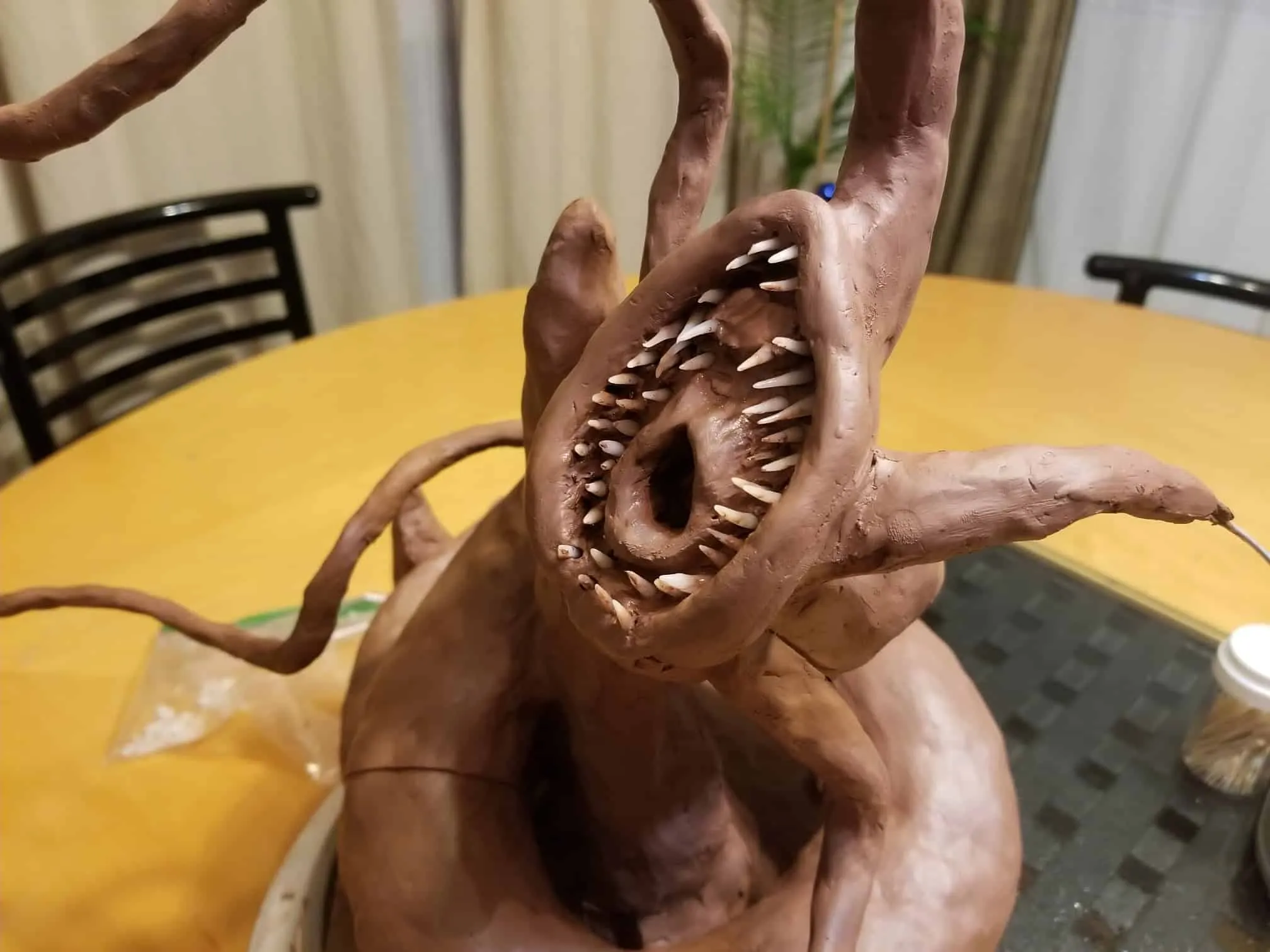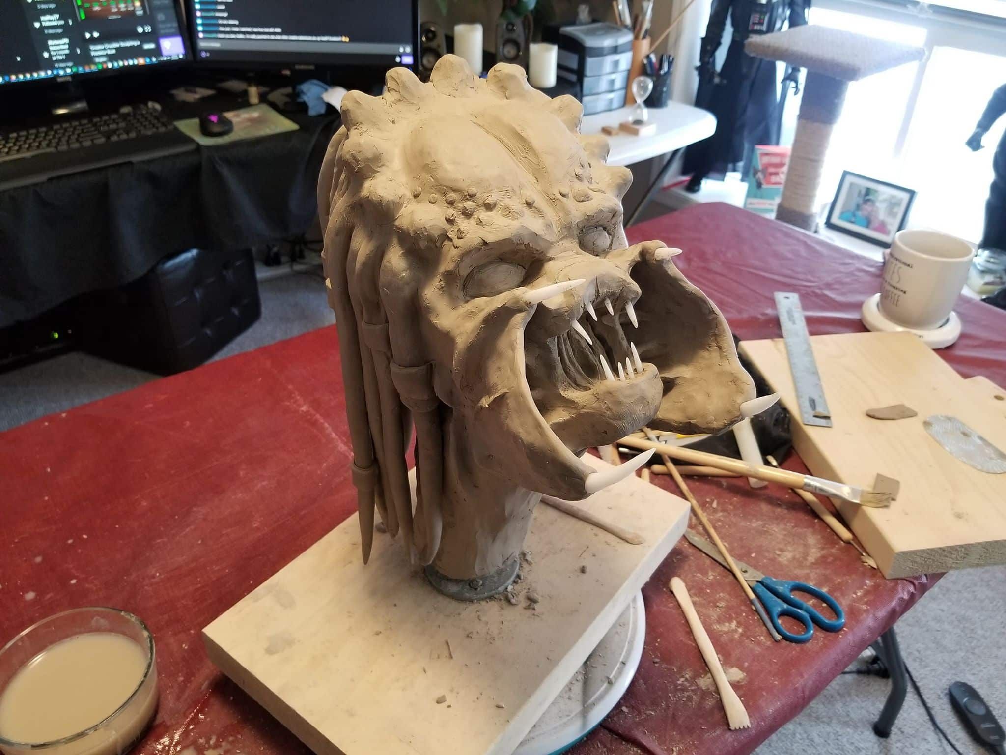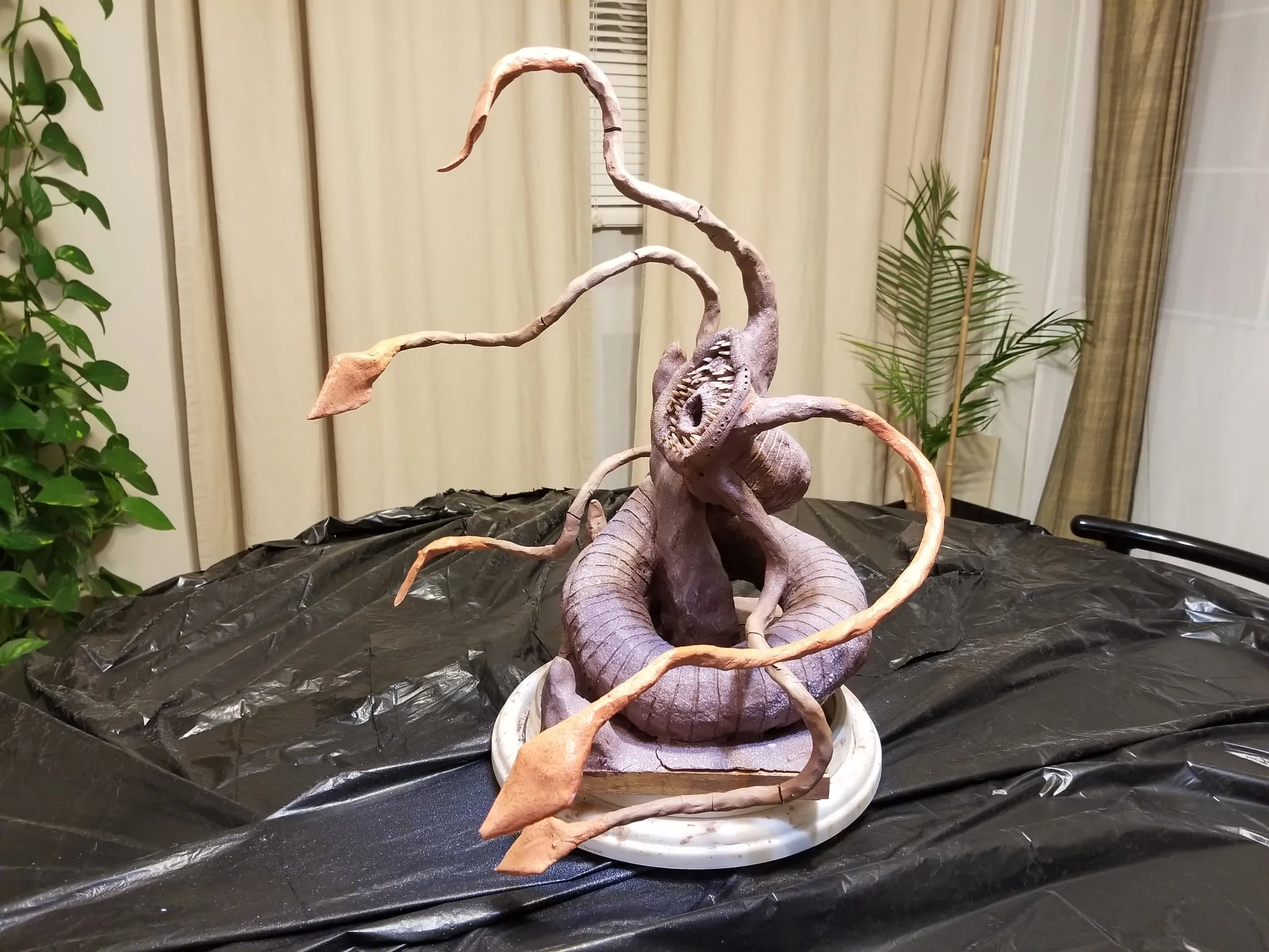 Just the same, I was determined to get something out of the experience so I sealed the sculpture up best I could, and airbrushed the base shading- before having to move, first once- then twice- before the sculpture was discovered by the cat. Needless to say, it is no longer on the to-do list, and now rests in a position of prestige in our gaming room.