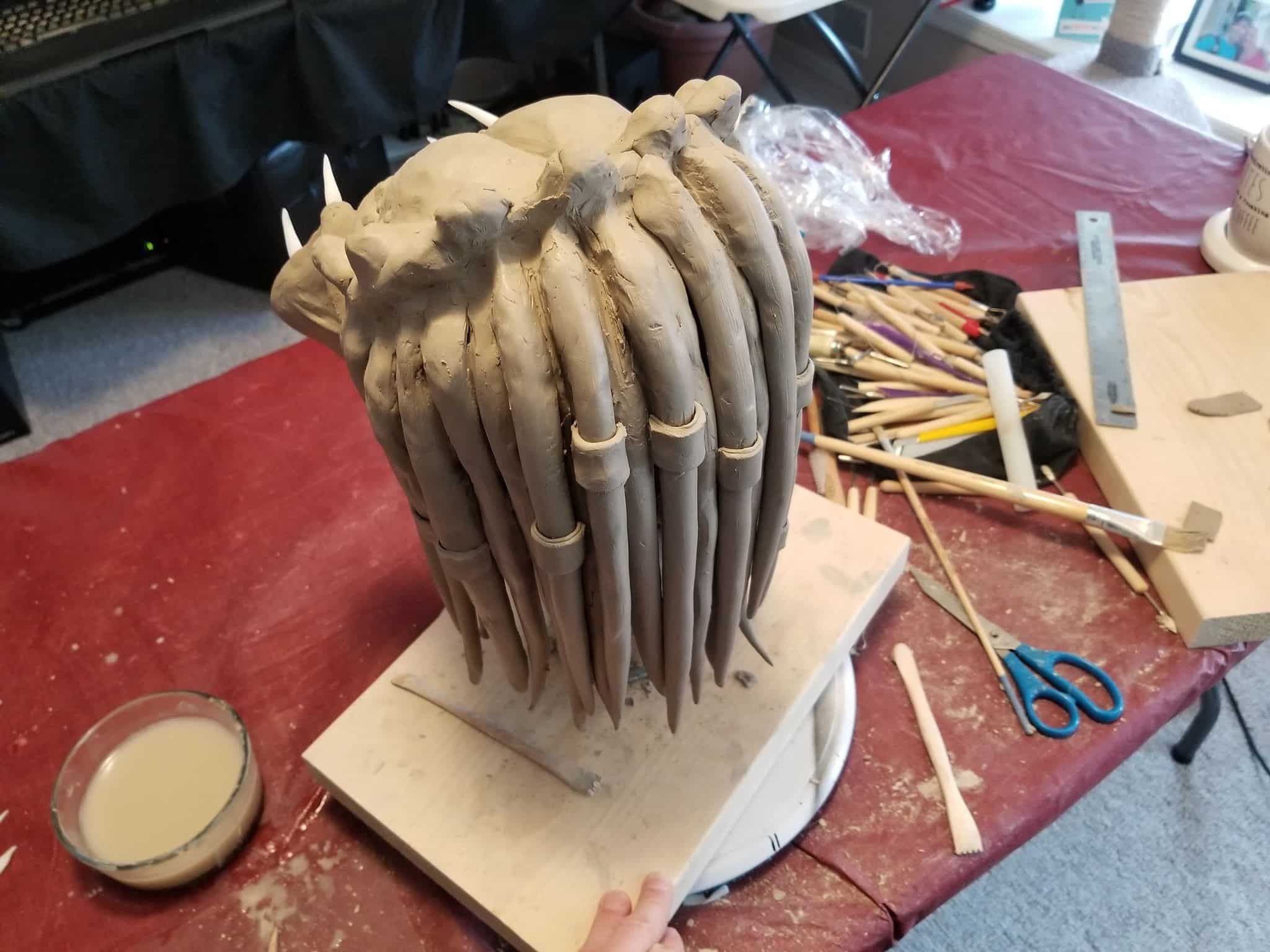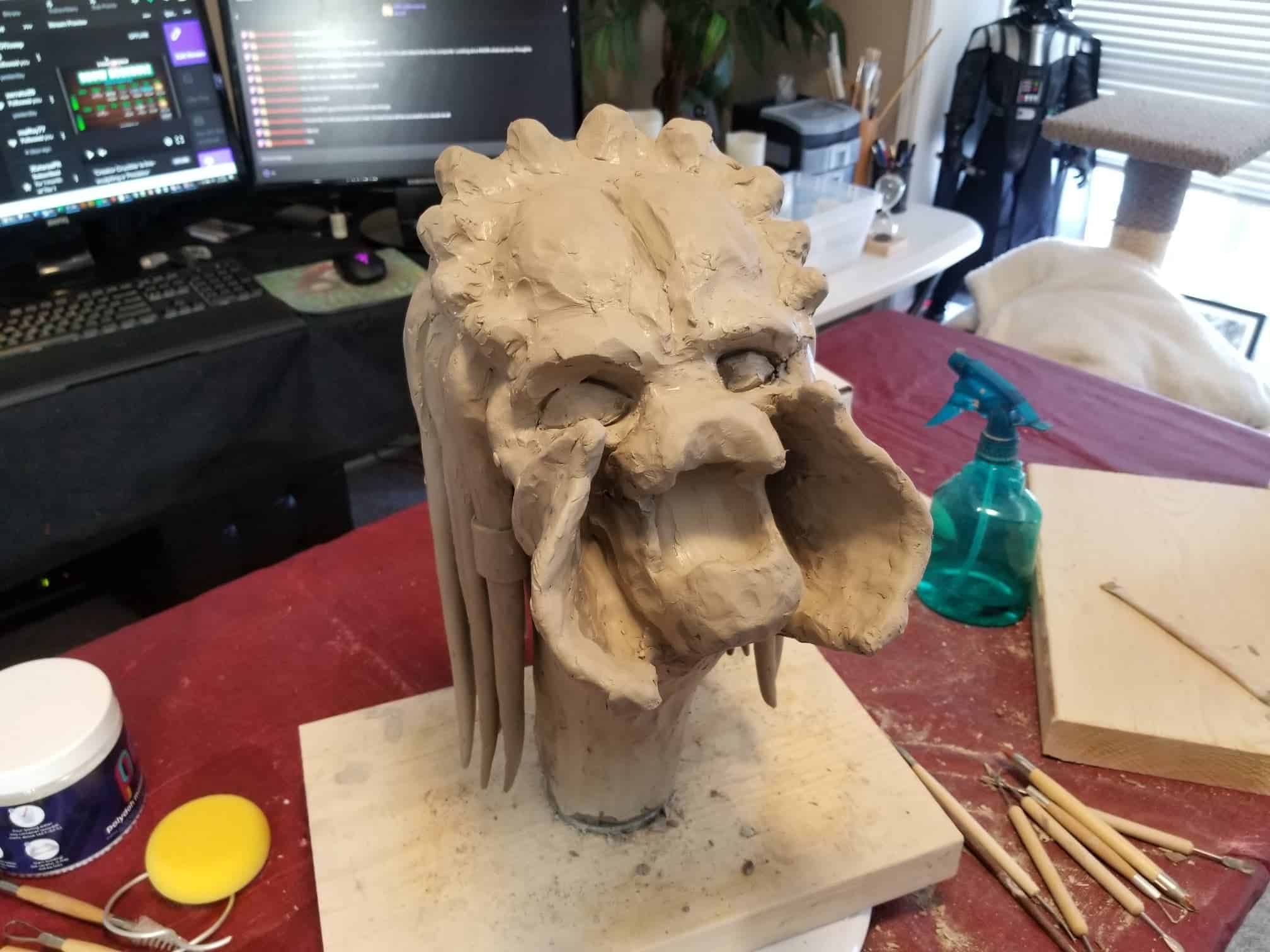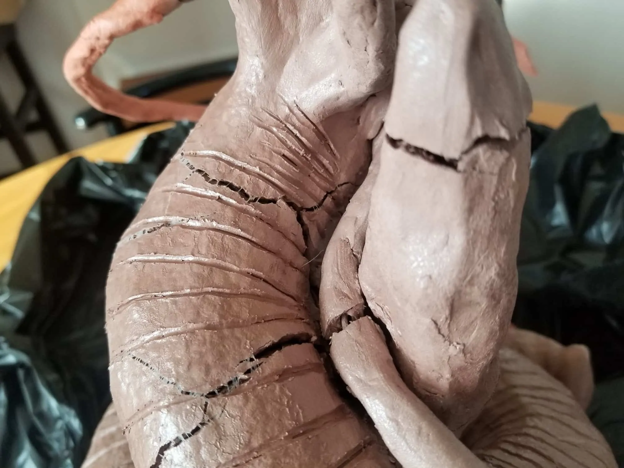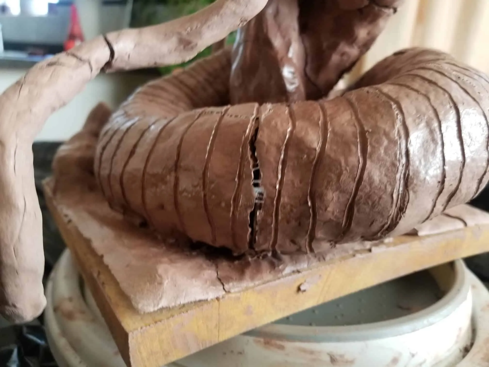 Unfortunately, while everything about this sculpture was going fantastic, the natural clay medium I selected was anything to the contrary. So, after a great deal of babysitting through the drying process- eventually the sculpture cracked in ways only images can describe (see below).