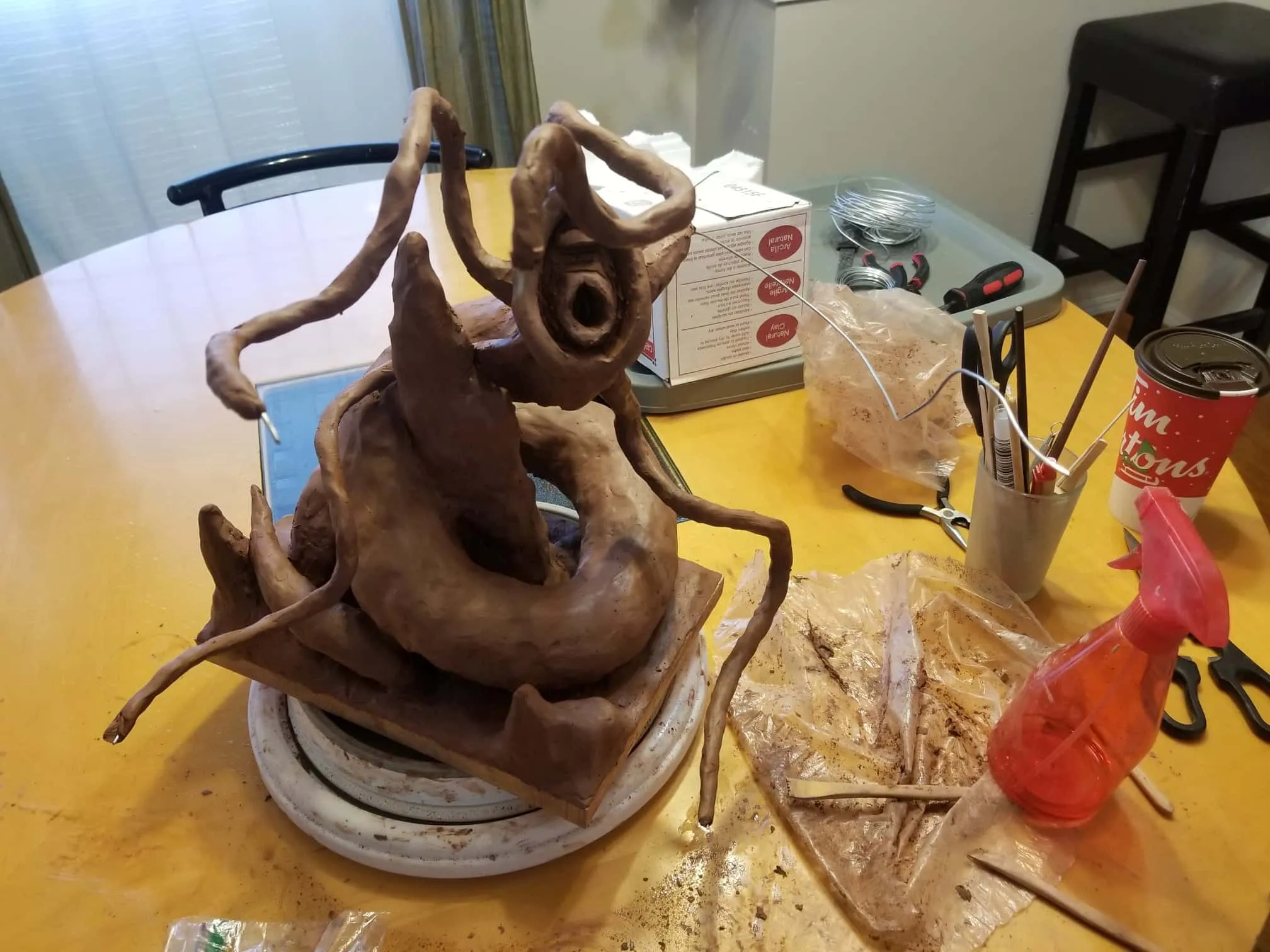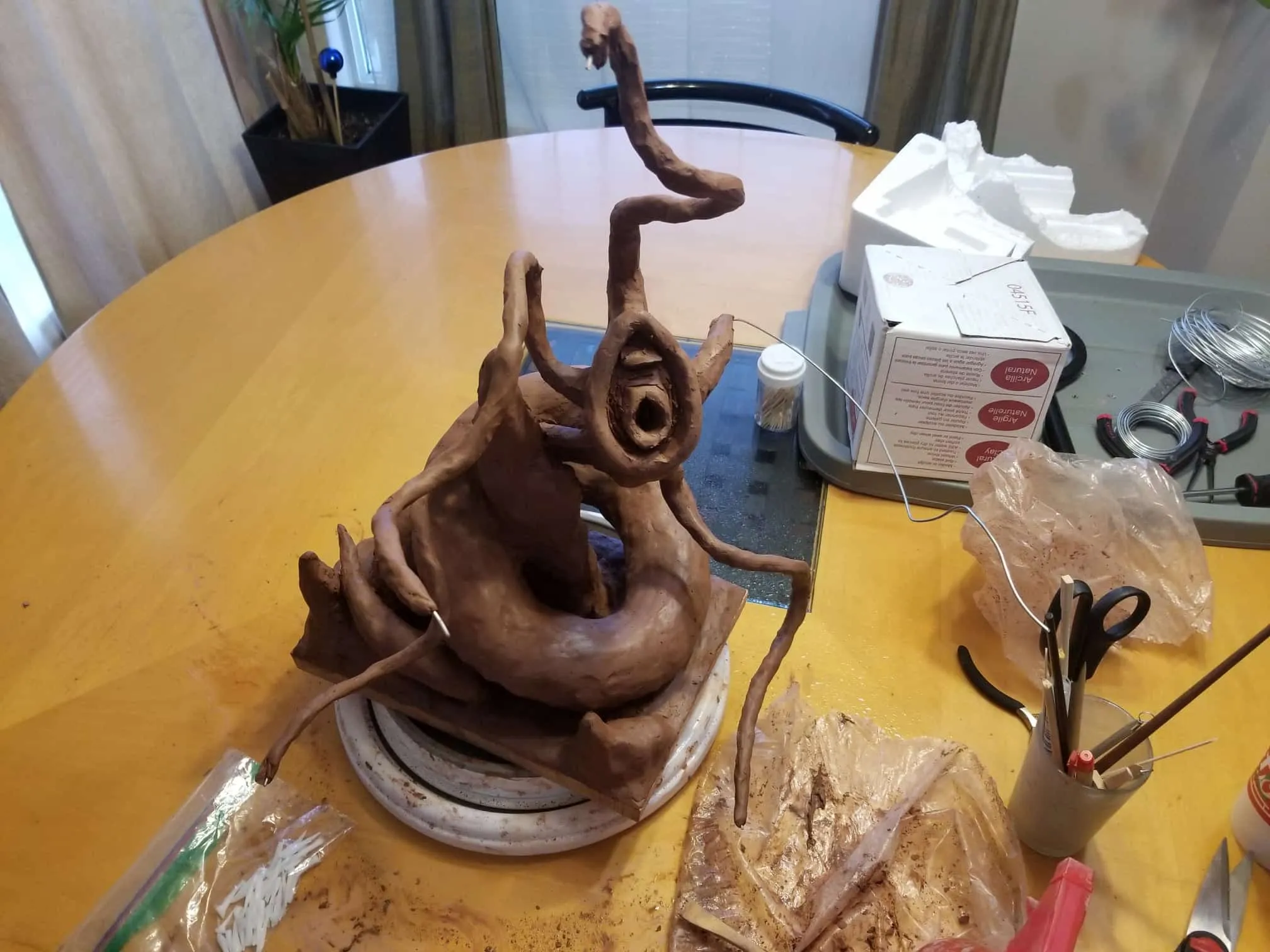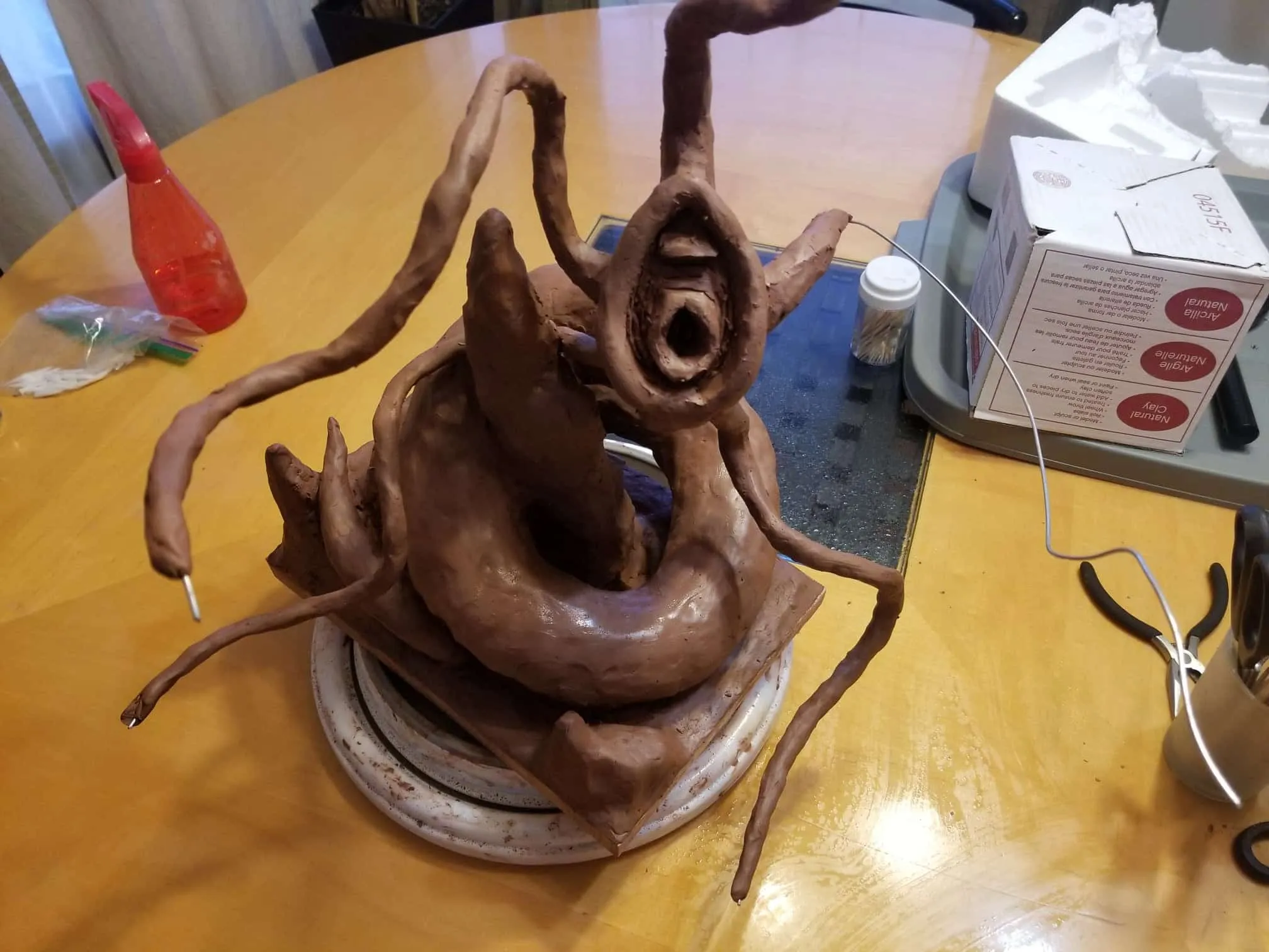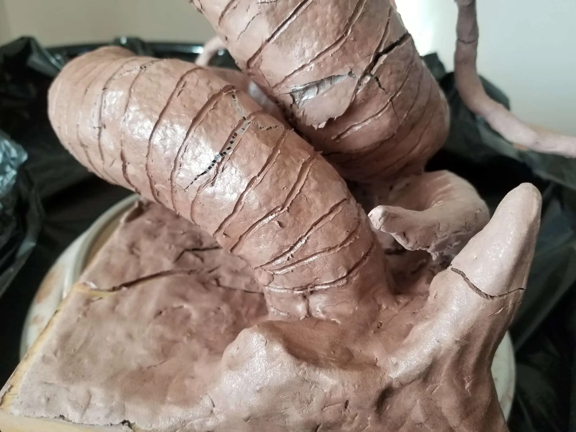 Unfortunately, while everything about this sculpture was going fantastic, the natural clay medium I selected was anything to the contrary. So, after a great deal of babysitting through the drying process- eventually the sculpture cracked in ways only images can describe (see below).