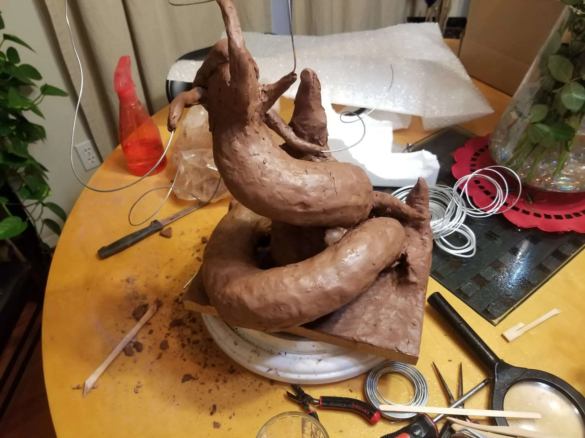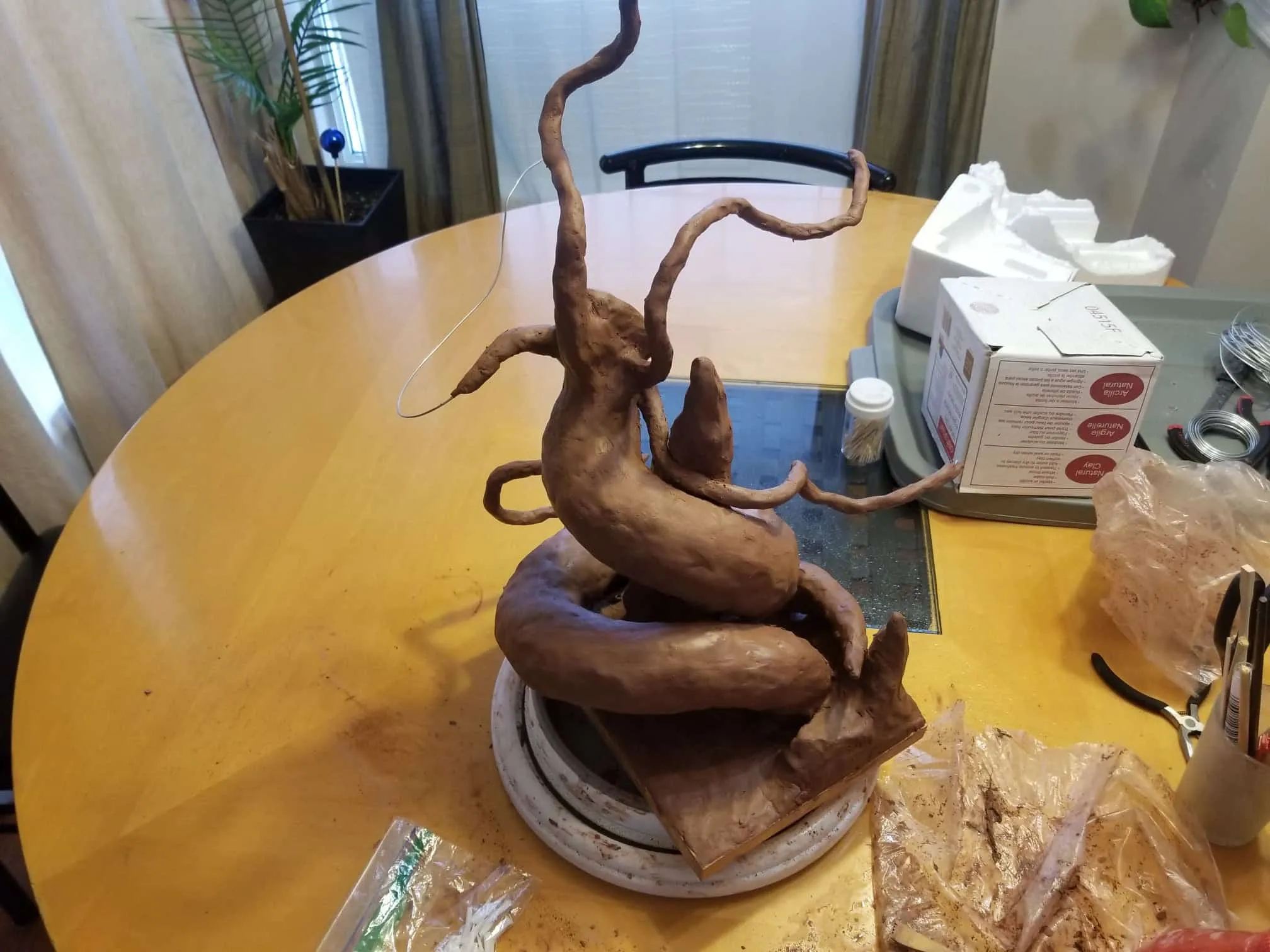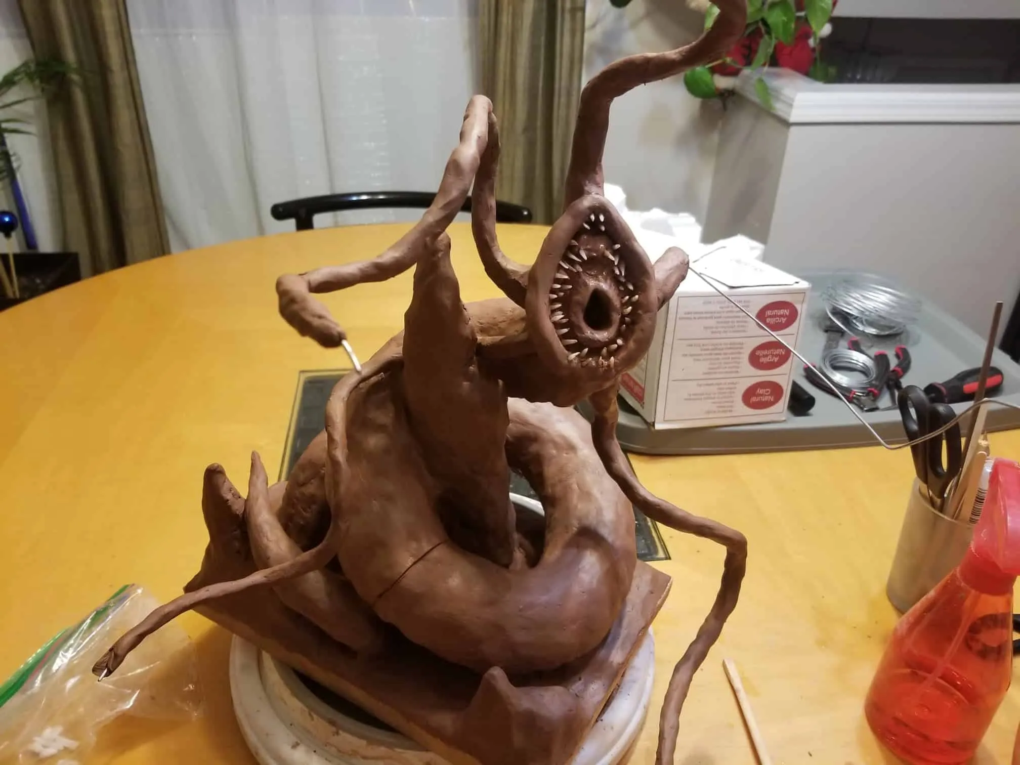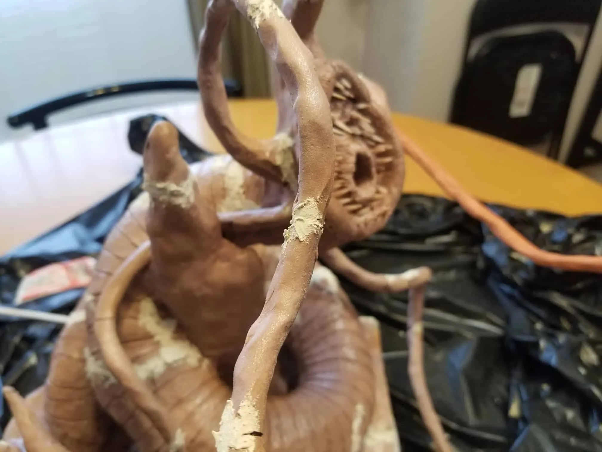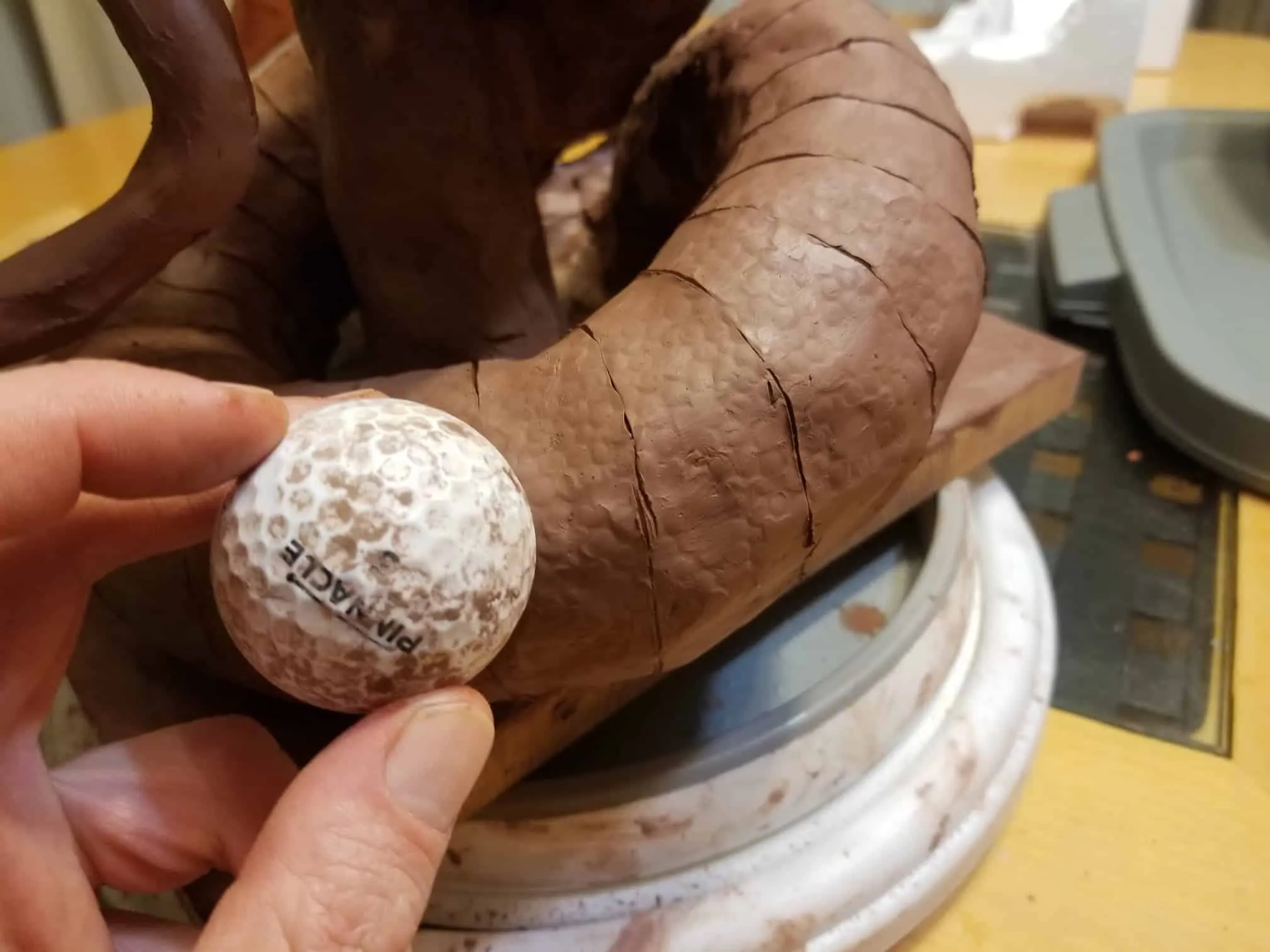 Unfortunately, while everything about this sculpture was going fantastic, the natural clay medium I selected was anything to the contrary. So, after a great deal of babysitting through the drying process- eventually the sculpture cracked in ways only images can describe (see below).