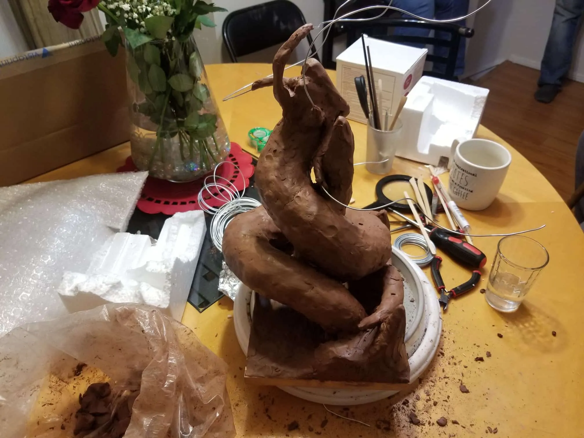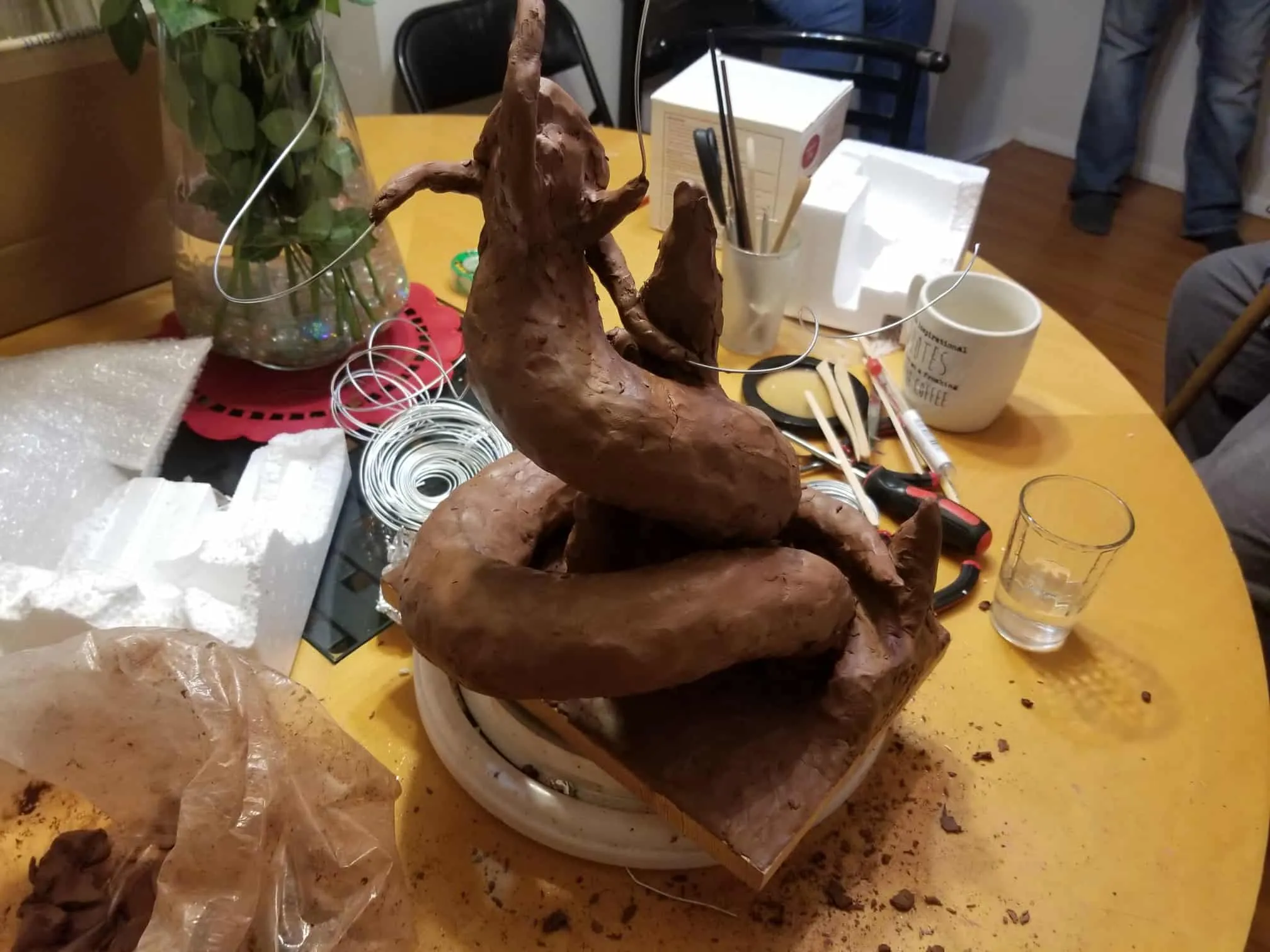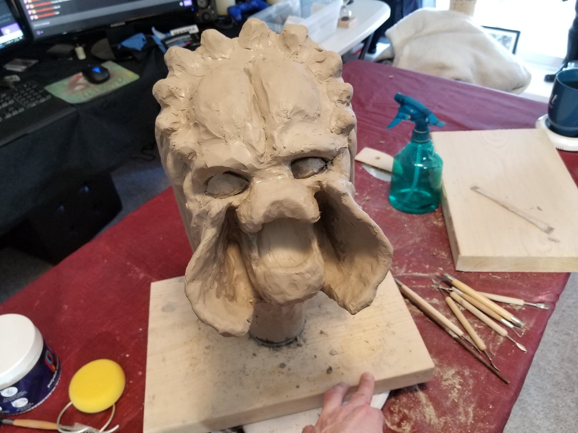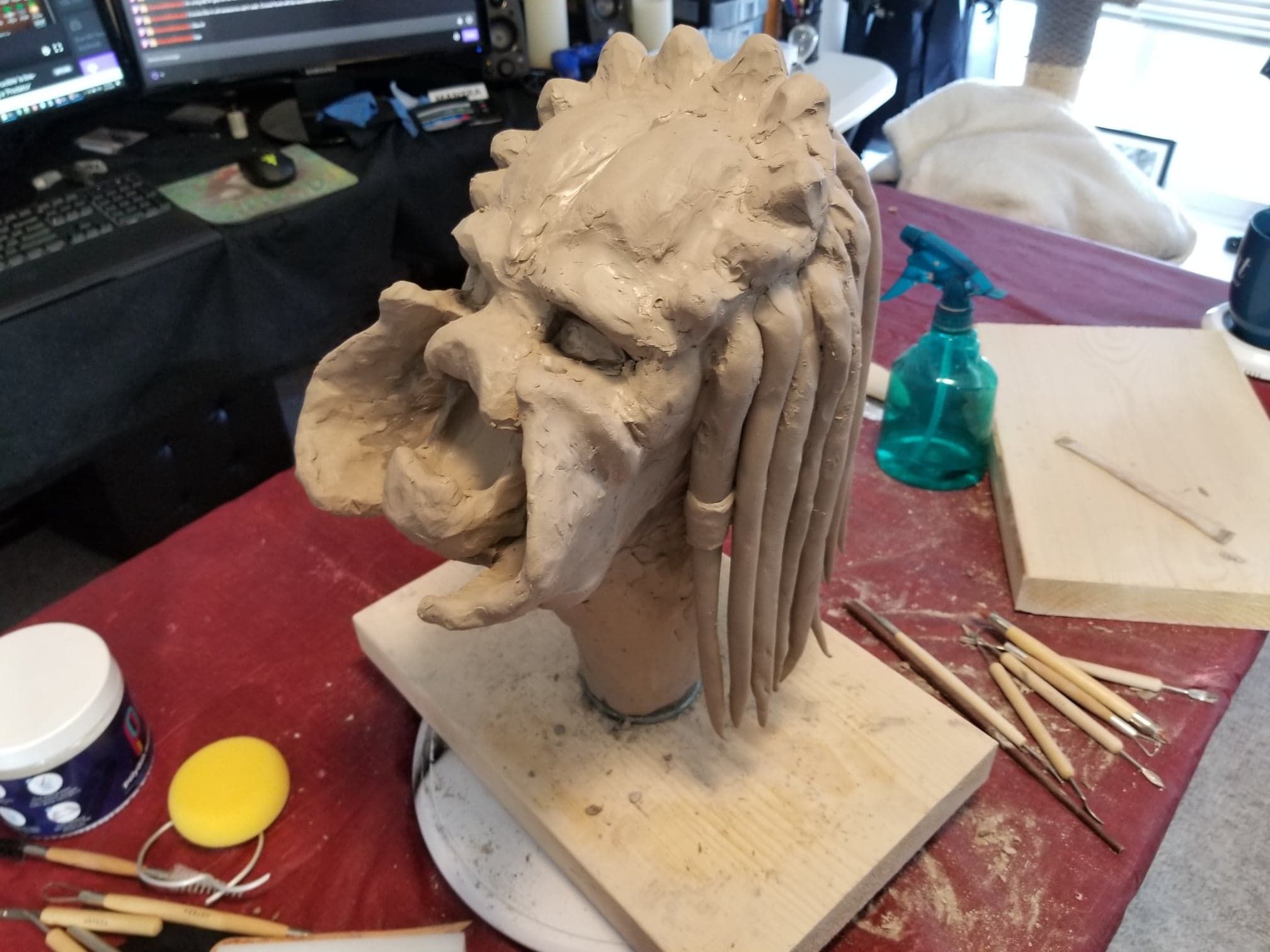 Unfortunately, while everything about this sculpture was going fantastic, the natural clay medium I selected was anything to the contrary. So, after a great deal of babysitting through the drying process- eventually the sculpture cracked in ways only images can describe (see below).