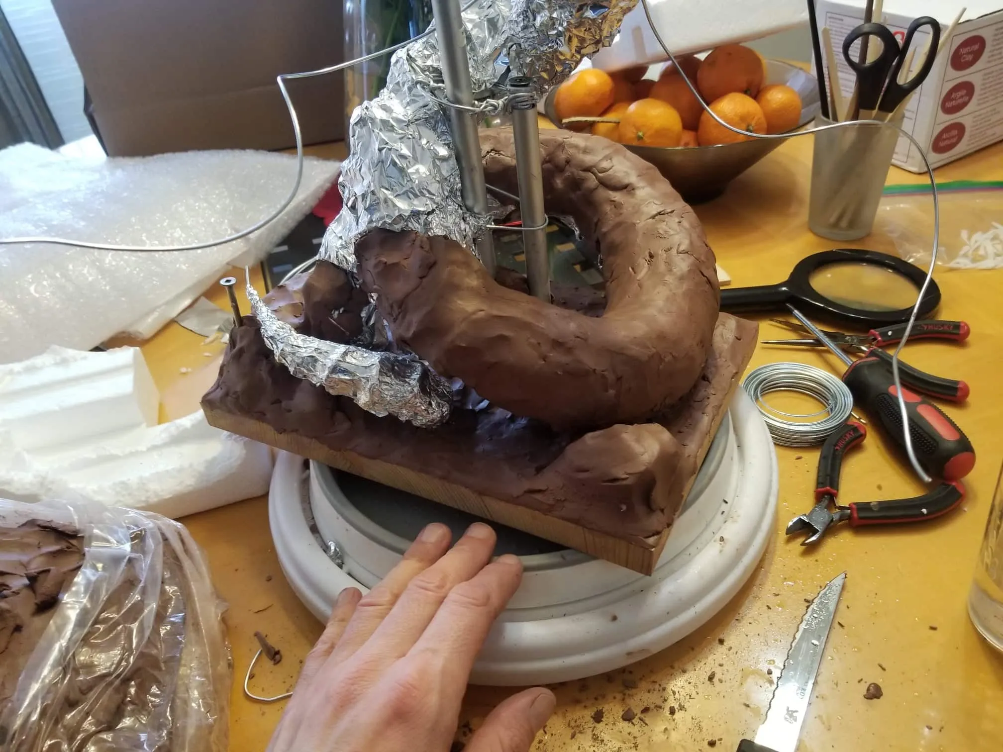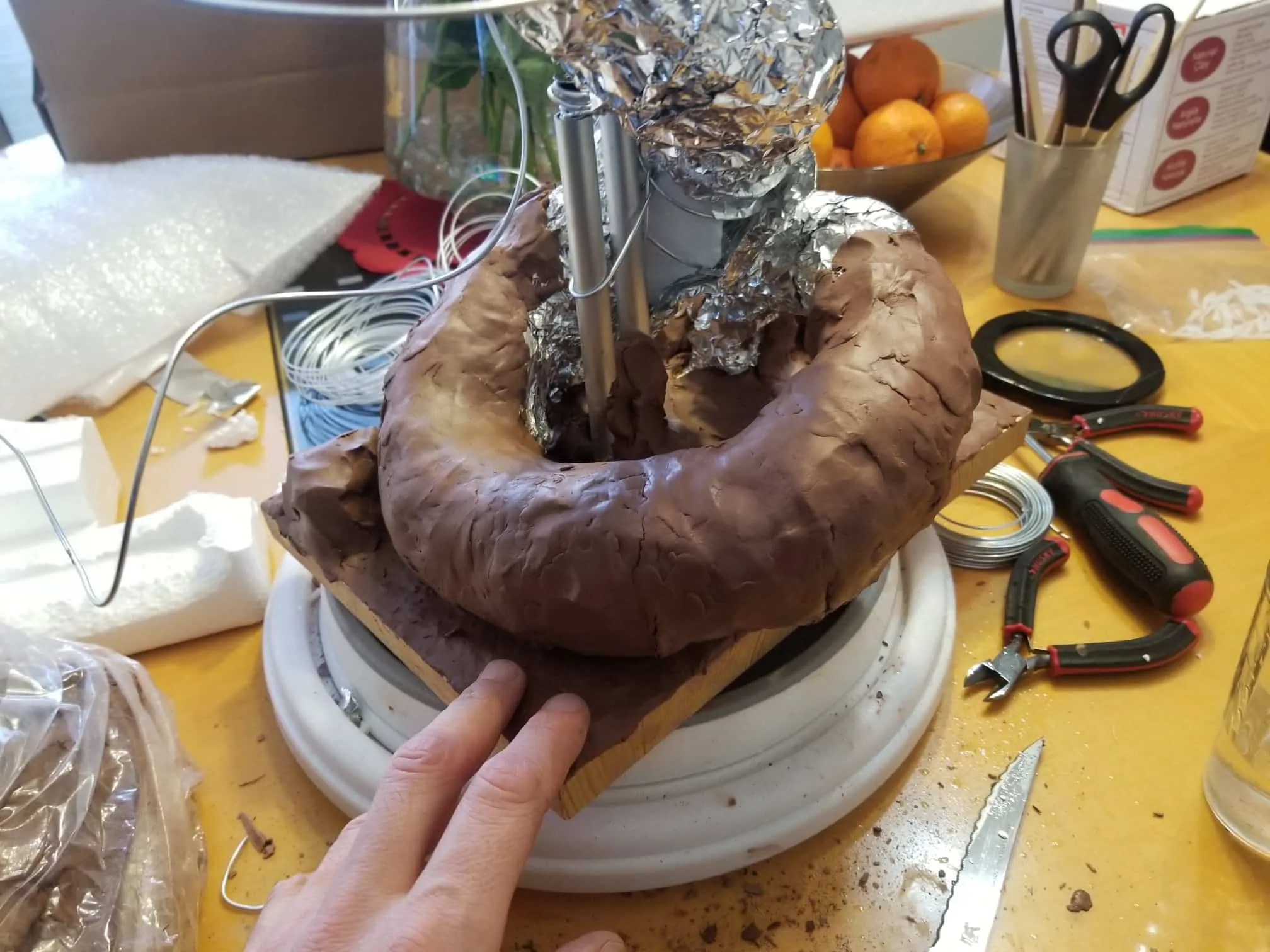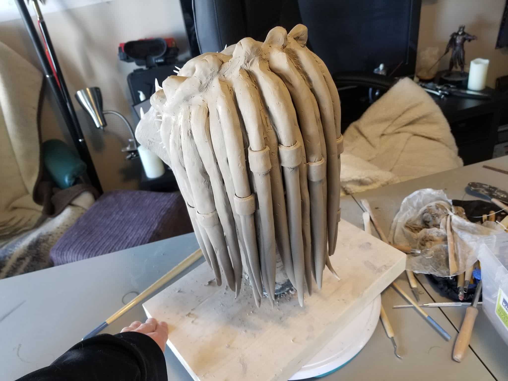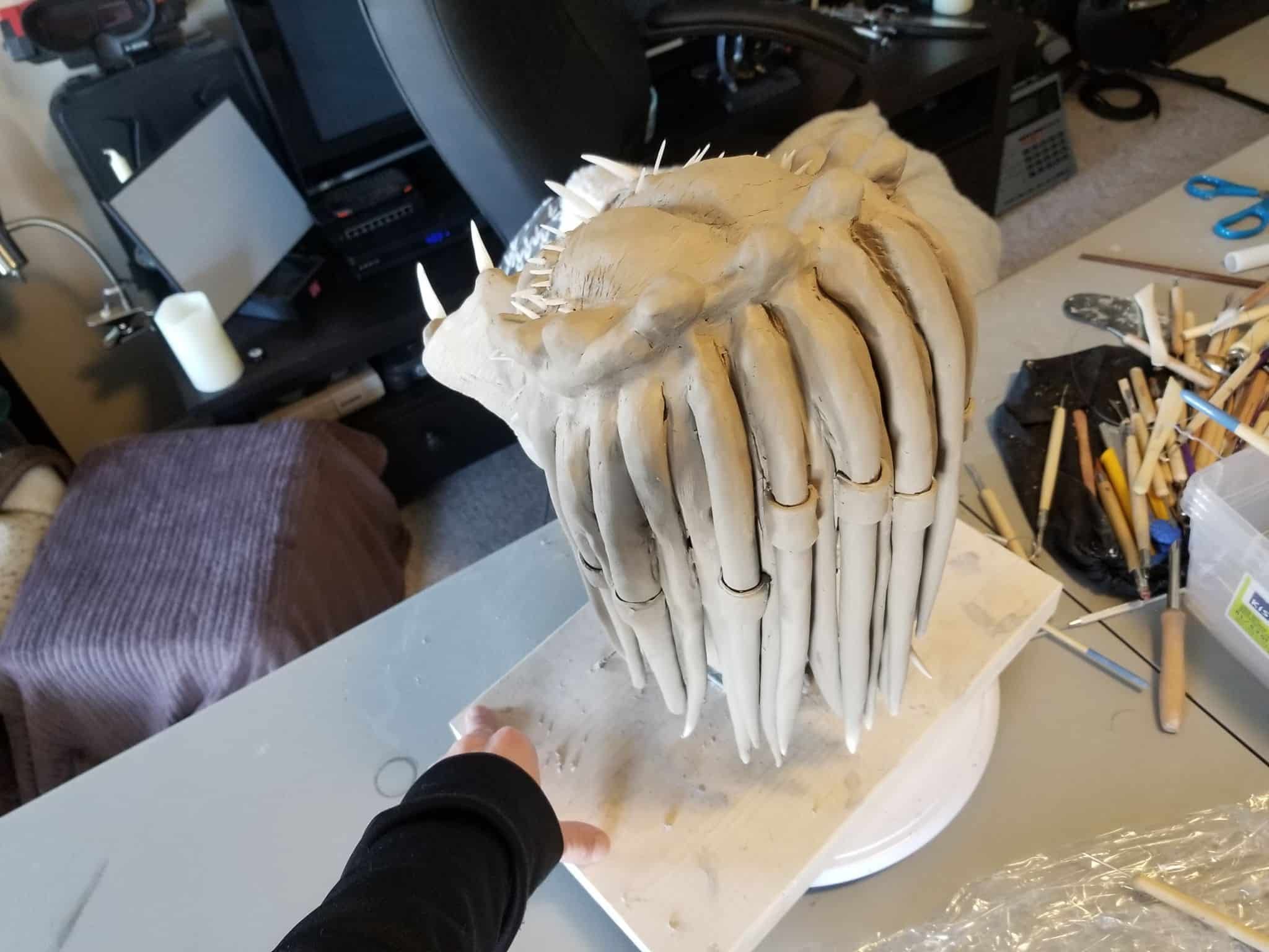 I used Sculpey® extra-firm synthetic clay, and I swear by it now. It holds every crease and fingerprint (ha!) beautifully and it’s pretty easy to work with. Of course, there’s the cost- at $15-$20CAD for a pack, it doesn’t seem too expensive, but if I want to build anything ‘life-sized’, I’m going to need to take out a loan, lol.