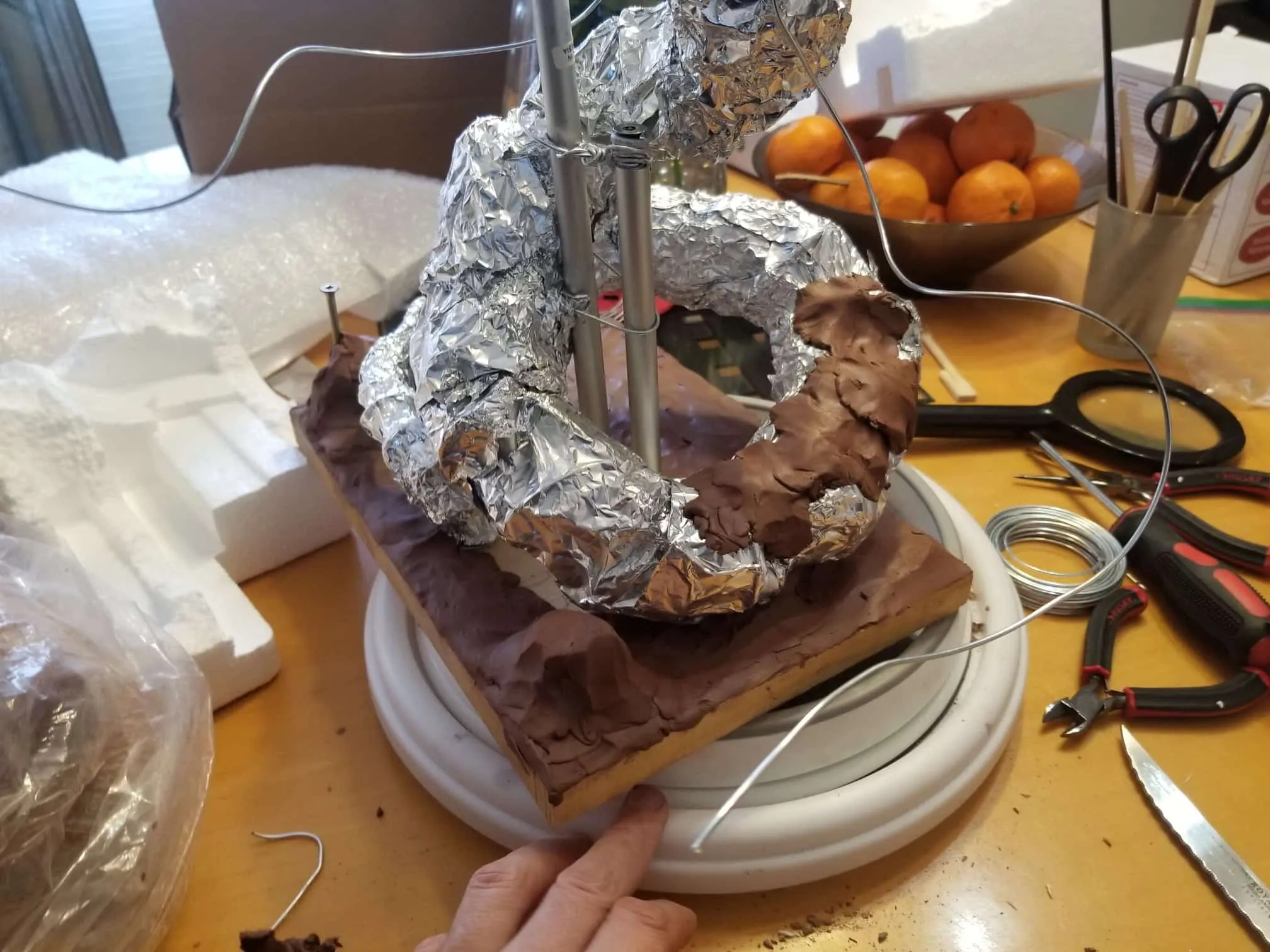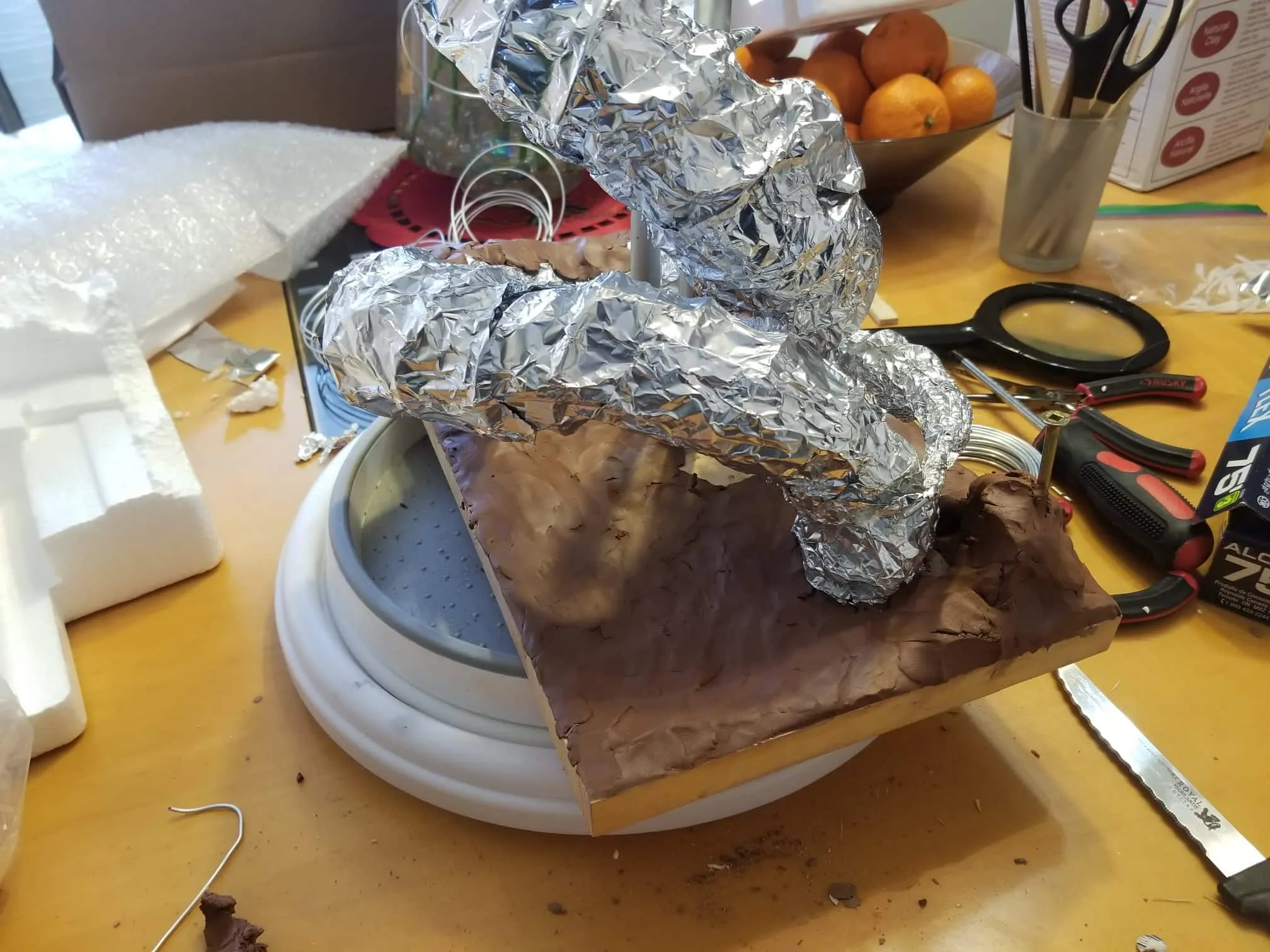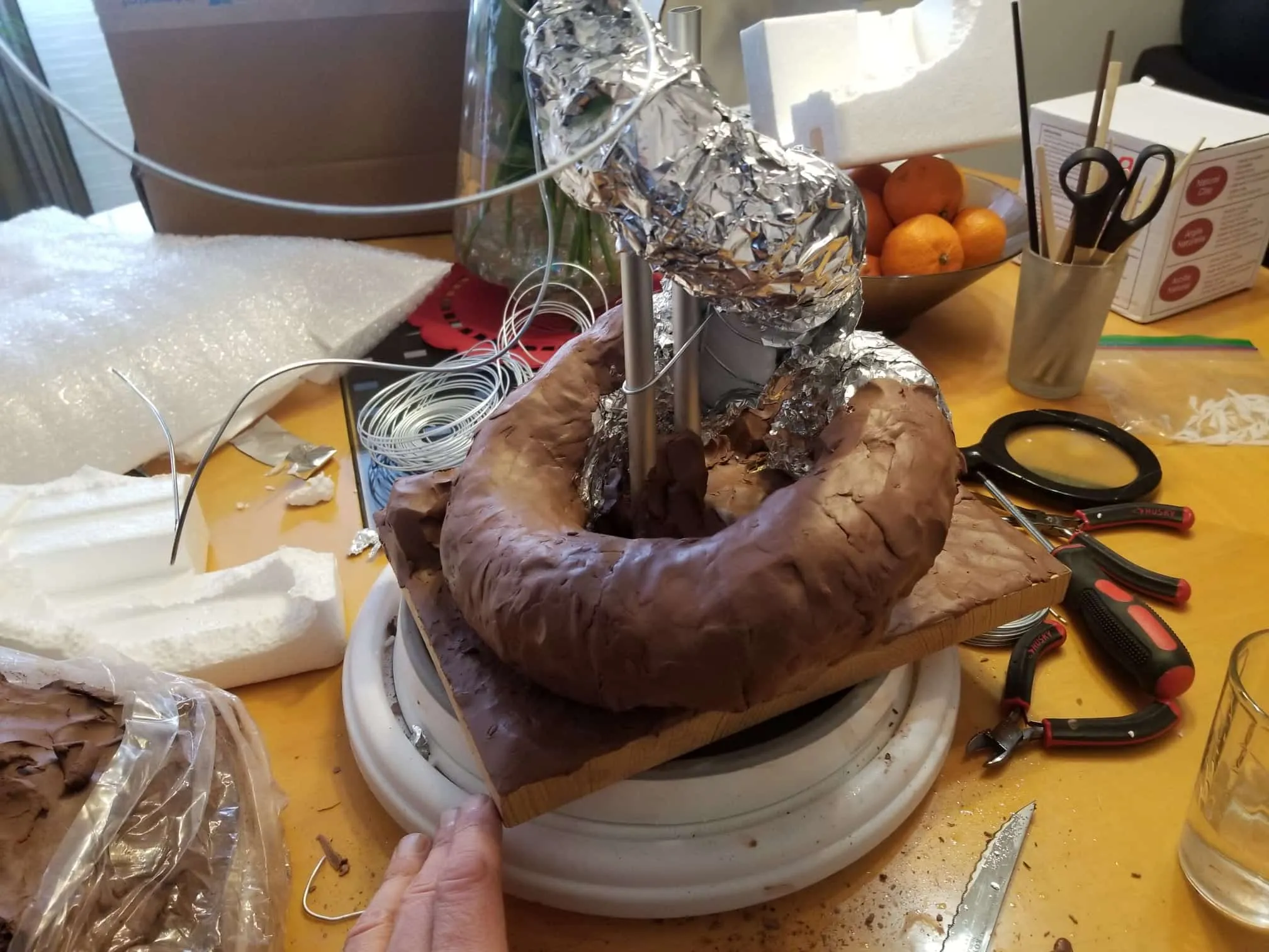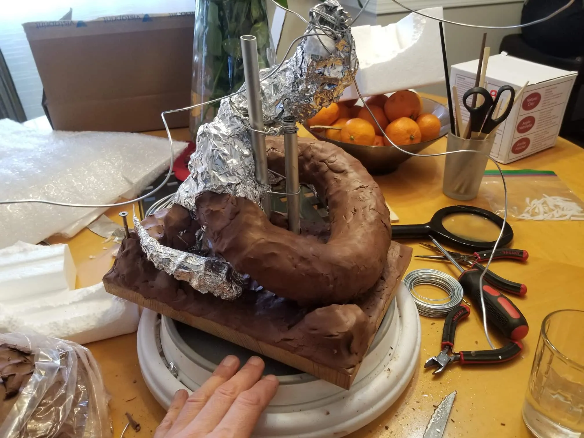 I used Sculpey® extra-firm synthetic clay, and I swear by it now. It holds every crease and fingerprint (ha!) beautifully and it’s pretty easy to work with. Of course, there’s the cost- at $15-$20CAD for a pack, it doesn’t seem too expensive, but if I want to build anything ‘life-sized’, I’m going to need to take out a loan, lol.