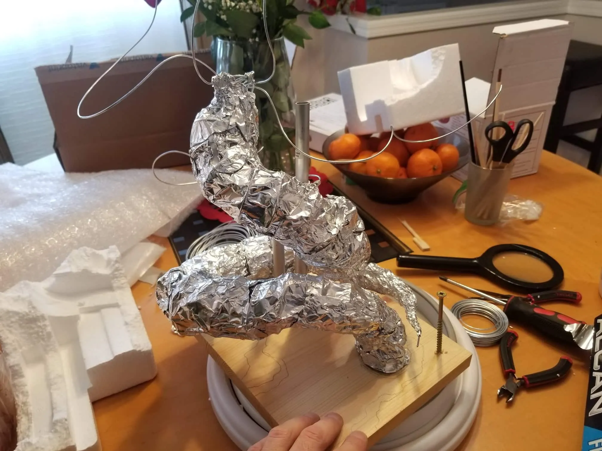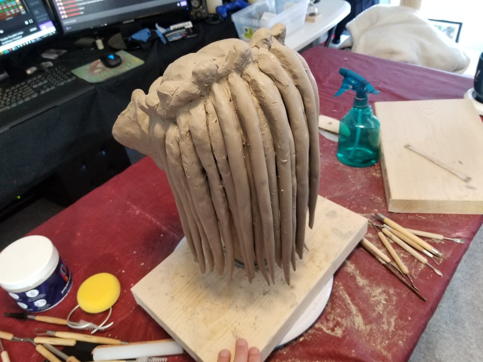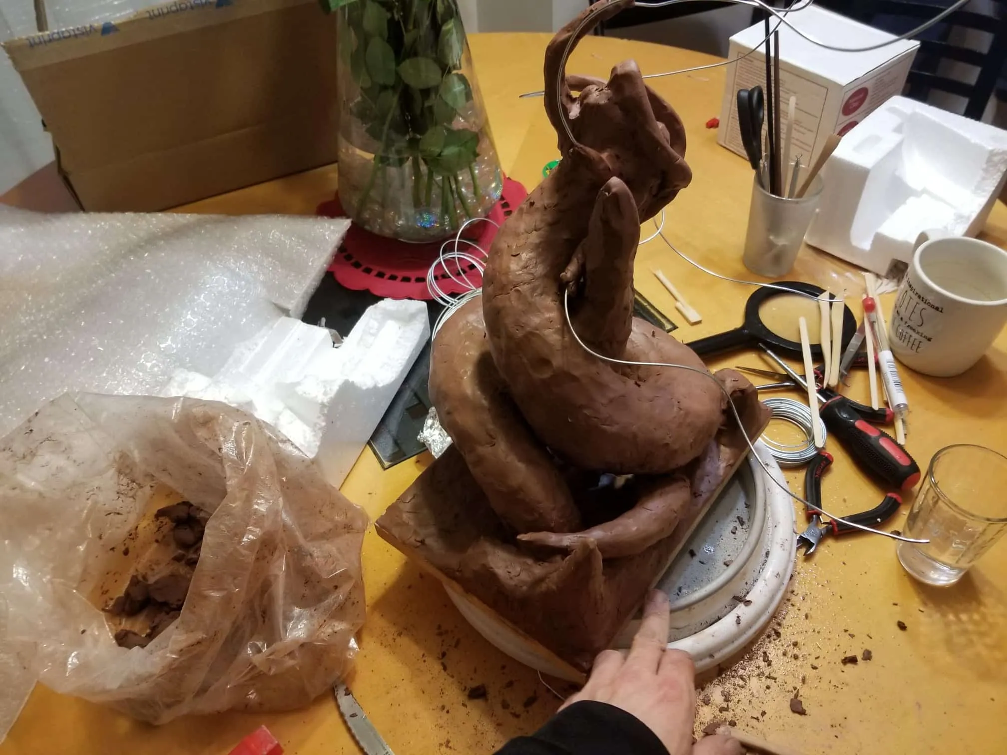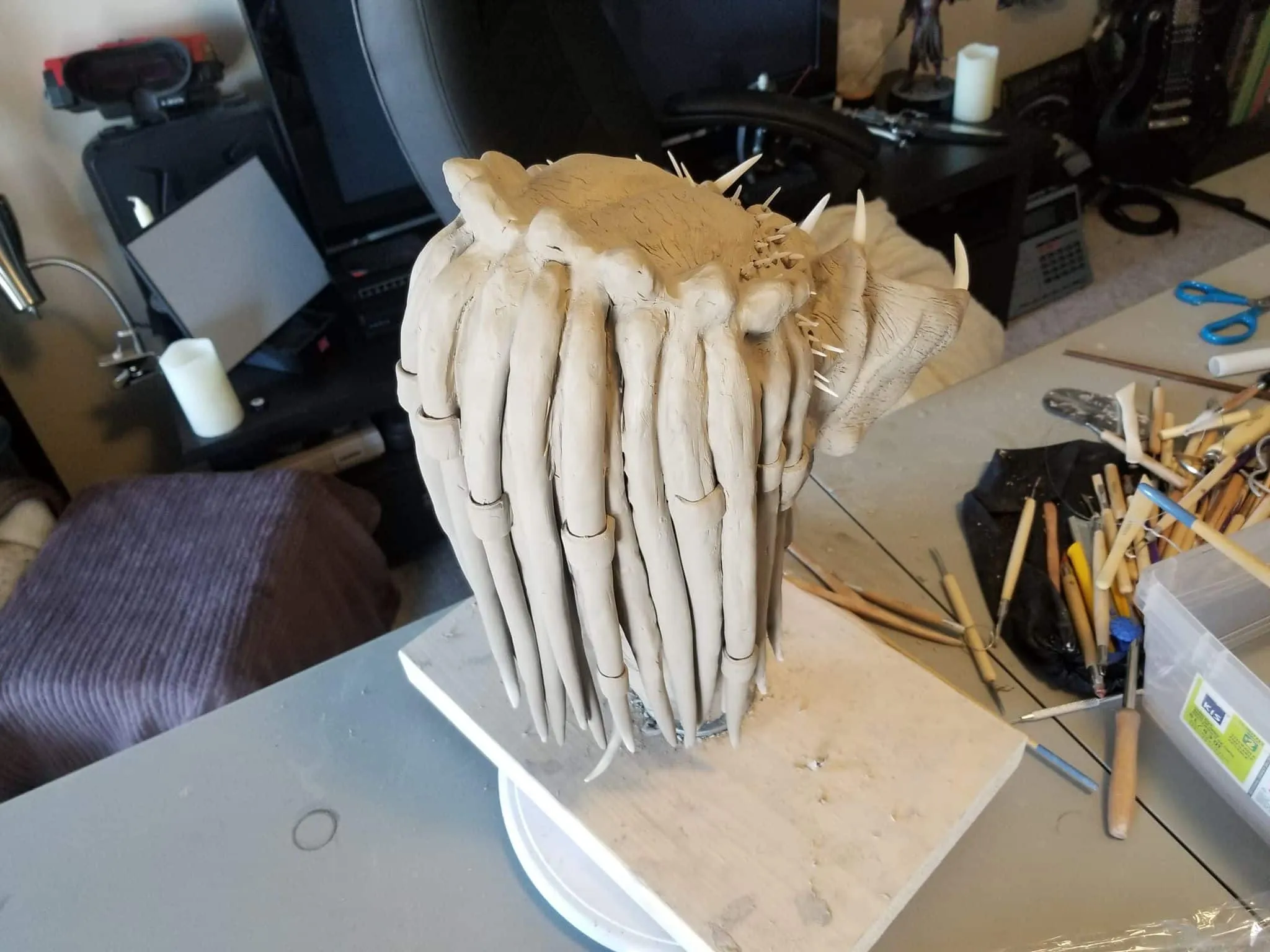 I used Sculpey® extra-firm synthetic clay, and I swear by it now. It holds every crease and fingerprint (ha!) beautifully and it’s pretty easy to work with. Of course, there’s the cost- at $15-$20CAD for a pack, it doesn’t seem too expensive, but if I want to build anything ‘life-sized’, I’m going to need to take out a loan, lol.