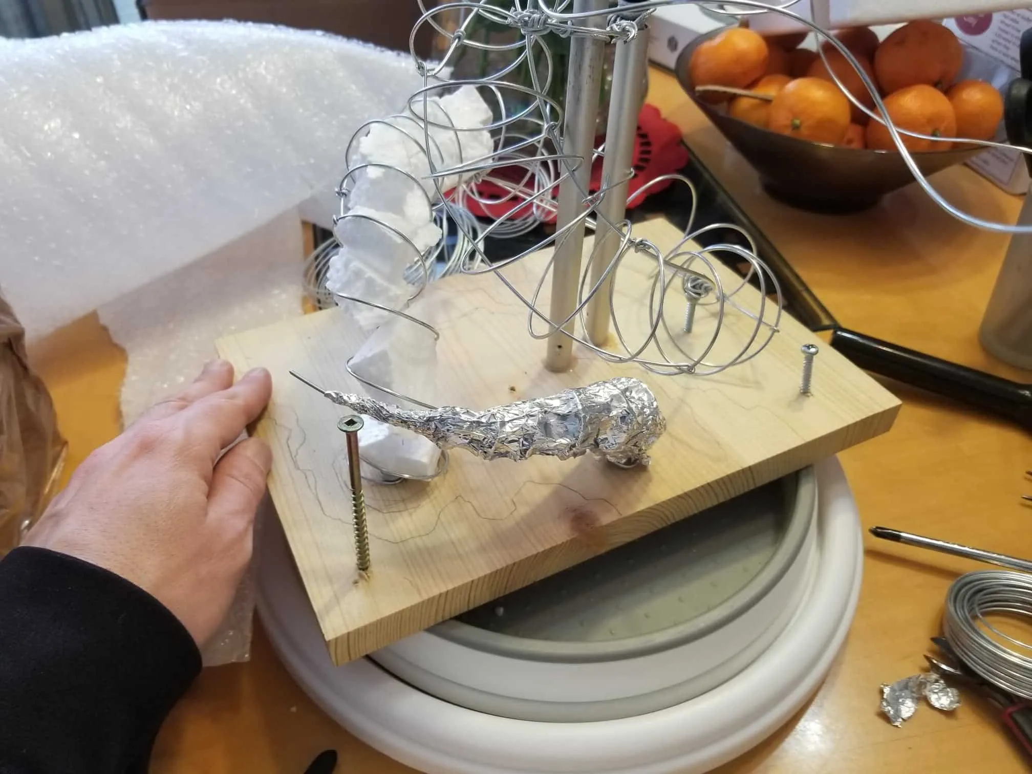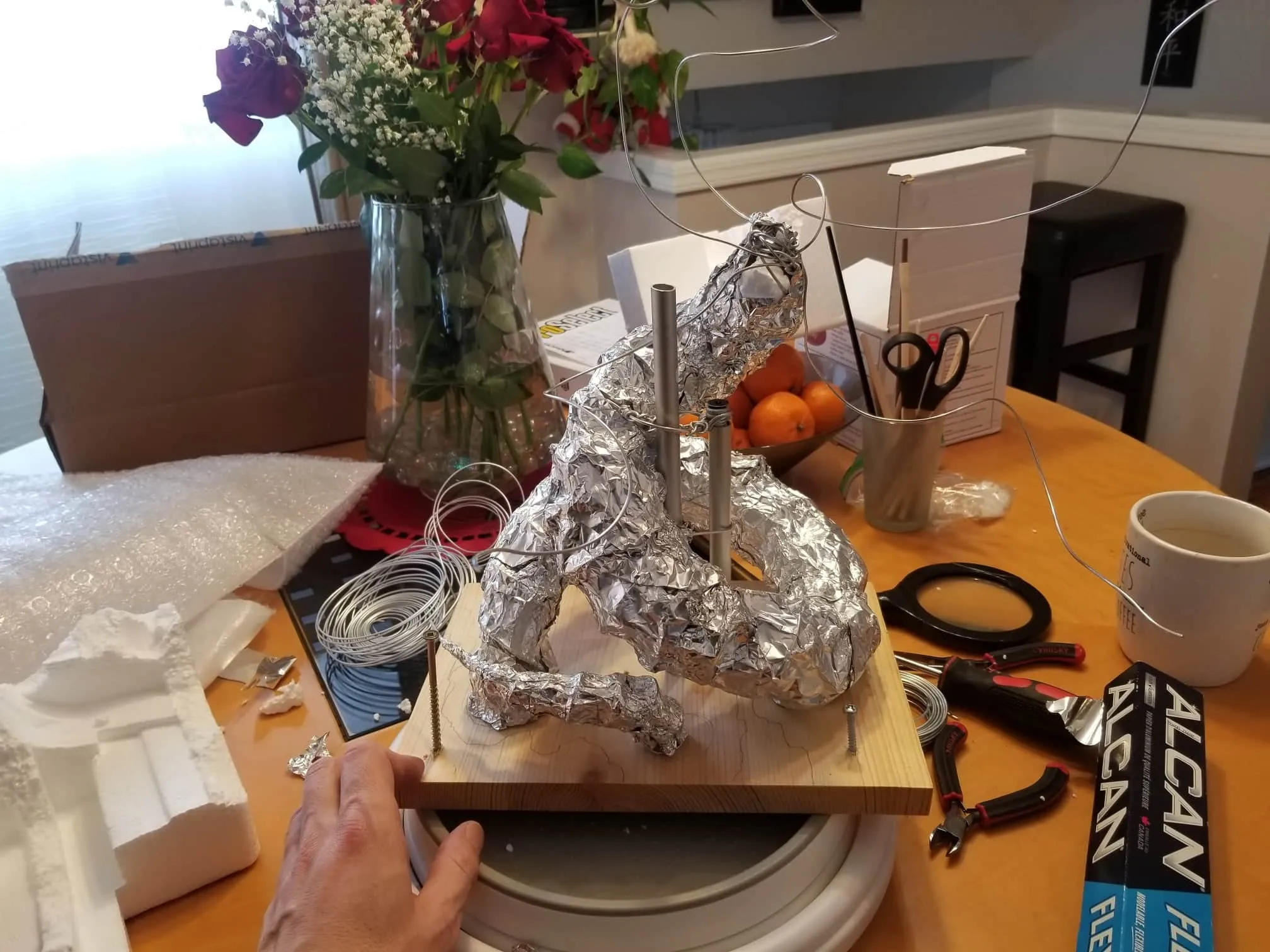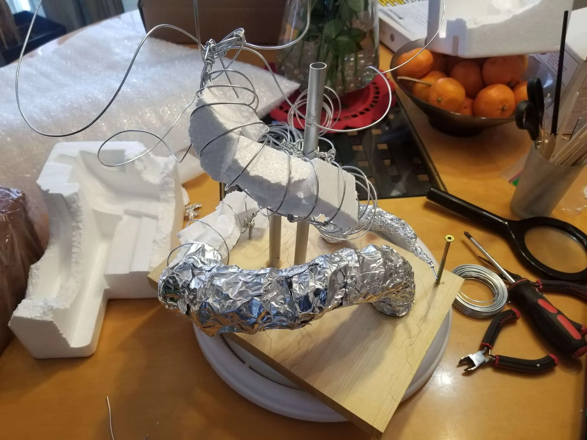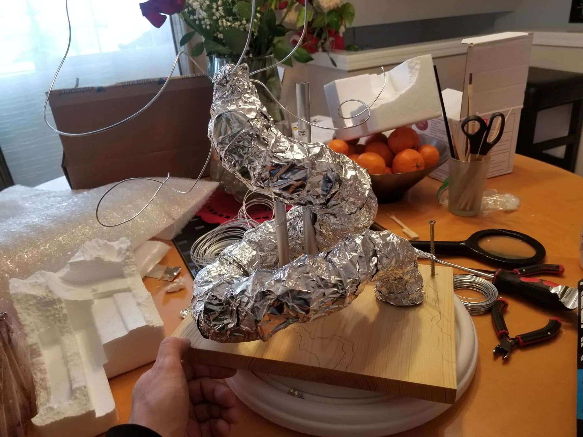 I used Sculpey® extra-firm synthetic clay, and I swear by it now. It holds every crease and fingerprint (ha!) beautifully and it’s pretty easy to work with. Of course, there’s the cost- at $15-$20CAD for a pack, it doesn’t seem too expensive, but if I want to build anything ‘life-sized’, I’m going to need to take out a loan, lol.