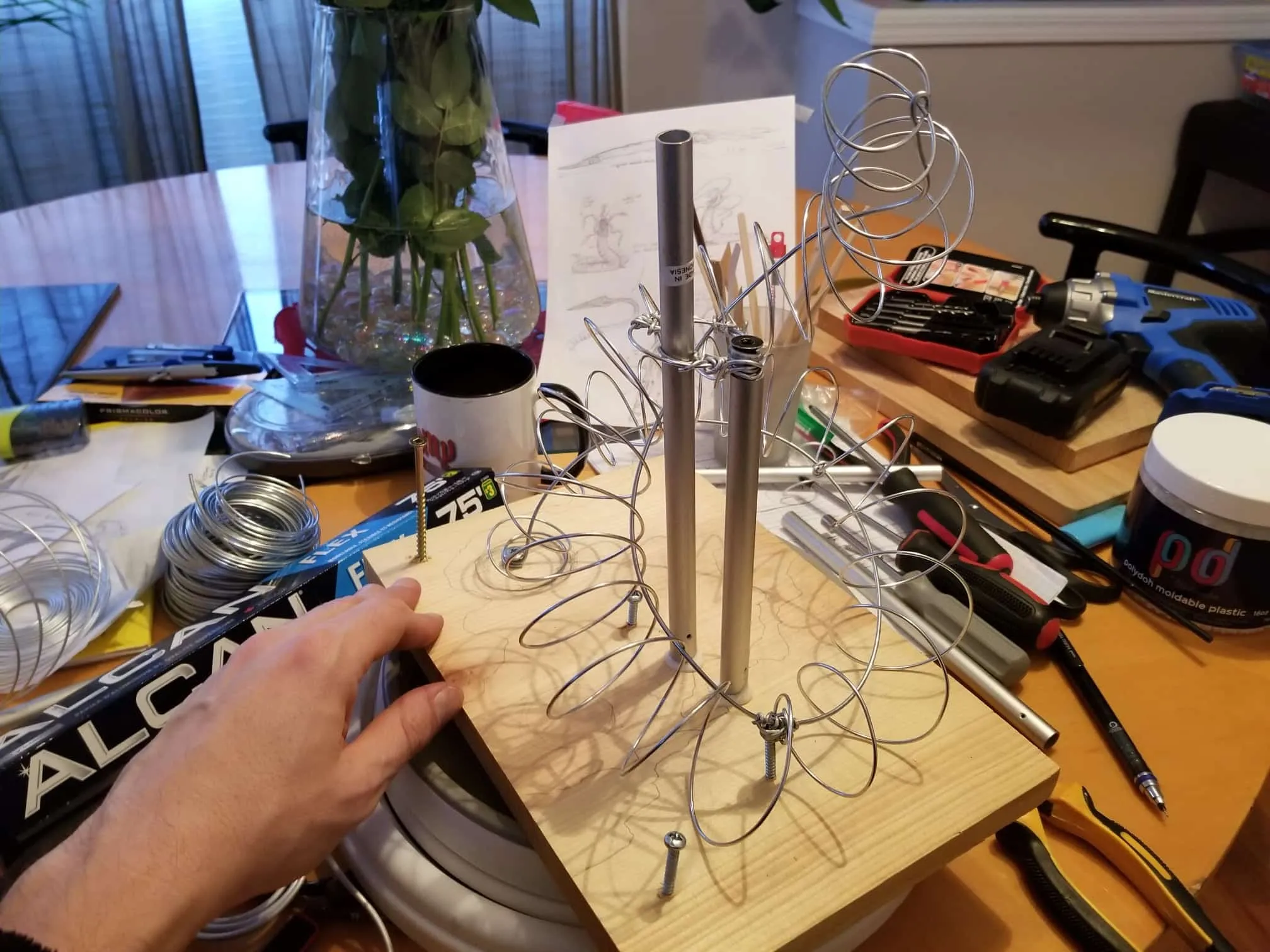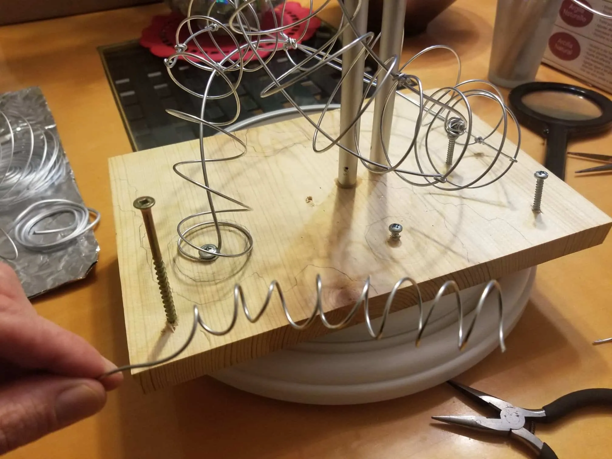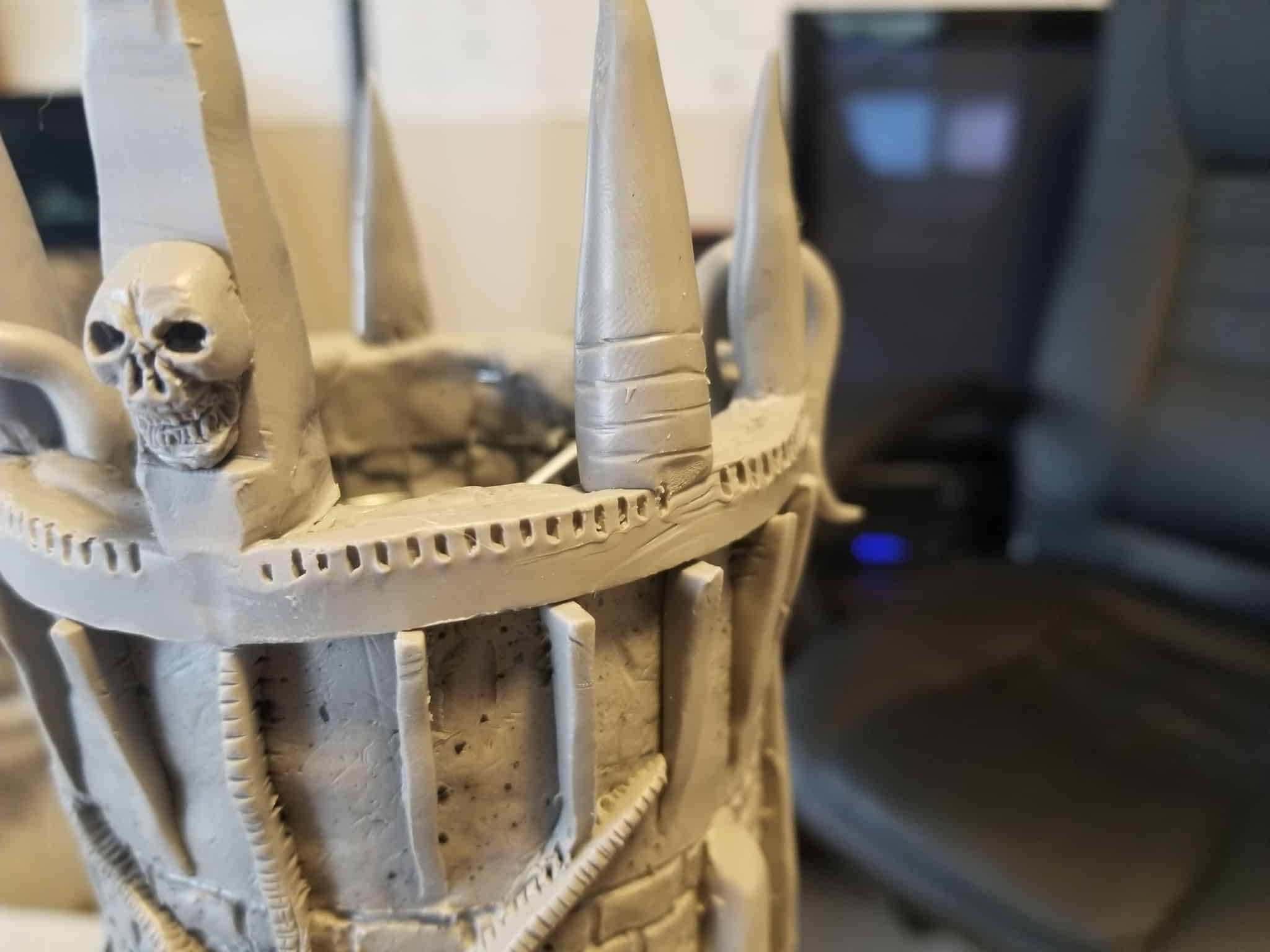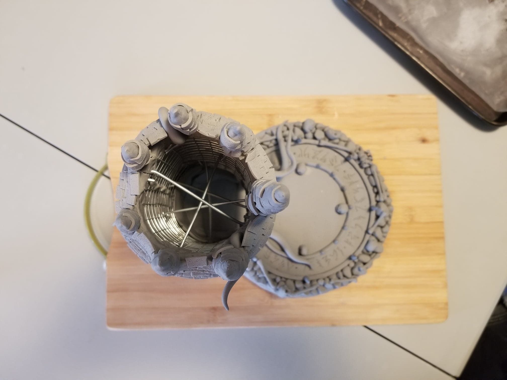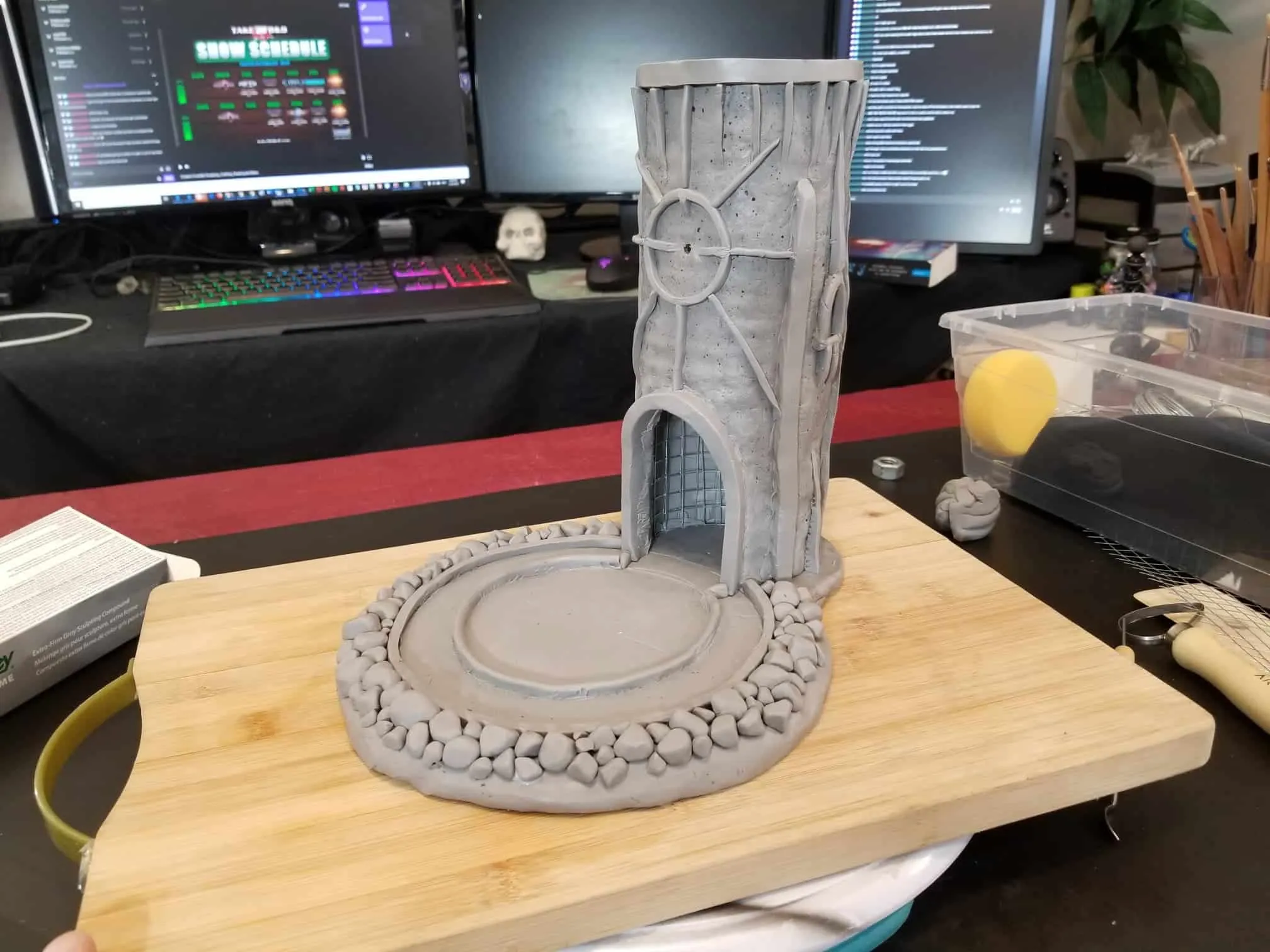 This dice tower (for tabletop role-playing games like Dungeons & Dragons®) was actually the first clay sculpture constructed using Sculpey® and using a wire mesh (that counts, right?). I looked online for a dice tower I could be proud to own and although there are several really nice options out there, I felt compelled to create my own. How hard could it be, right? Seriously, it was one heck of a learning process.